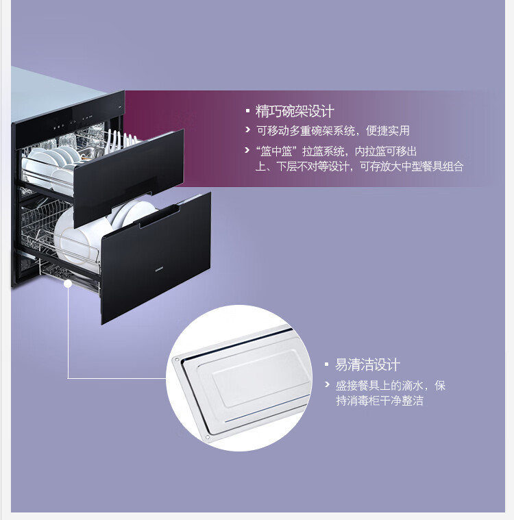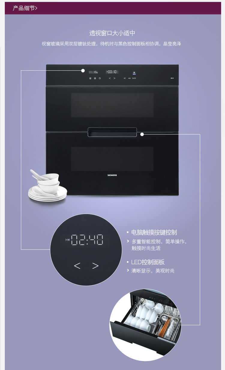 西门子(SIEMENS) 100升 嵌入式家用消毒柜 二星级 碗筷消毒柜碗柜黑色 HS363600W