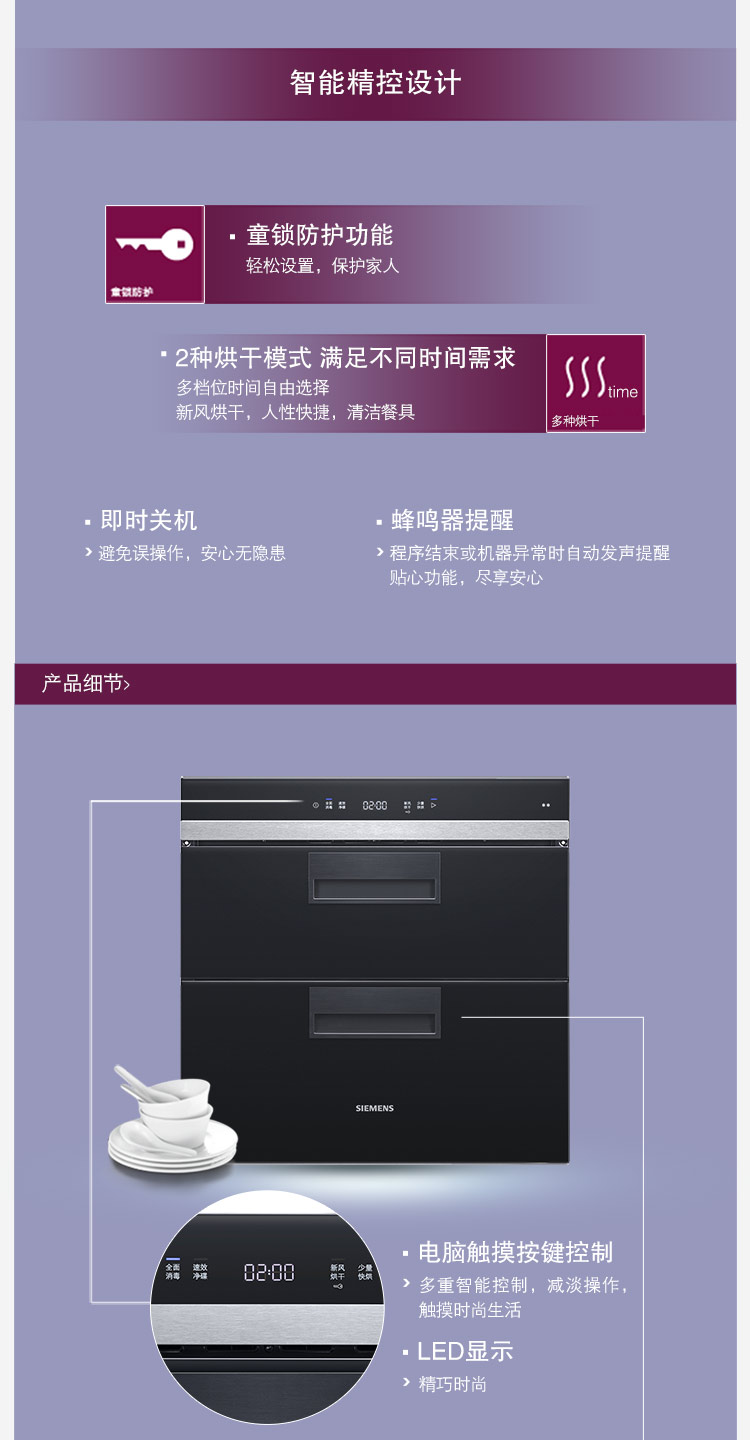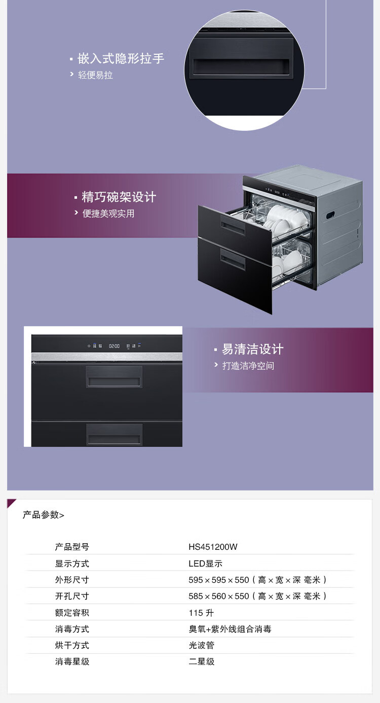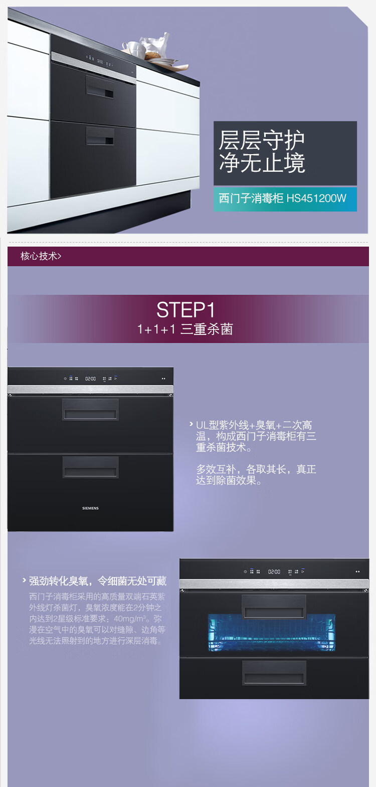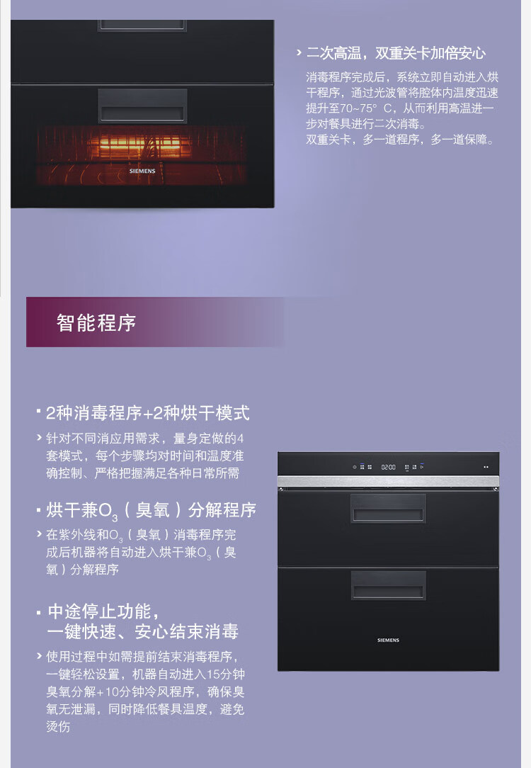 商品名称:西门子(SIEMENS)115升 嵌入式消毒柜家用钢化玻璃 臭氧高温紫外线三重除菌 新风烘干 HS451200W
