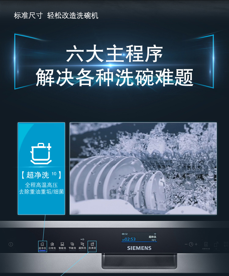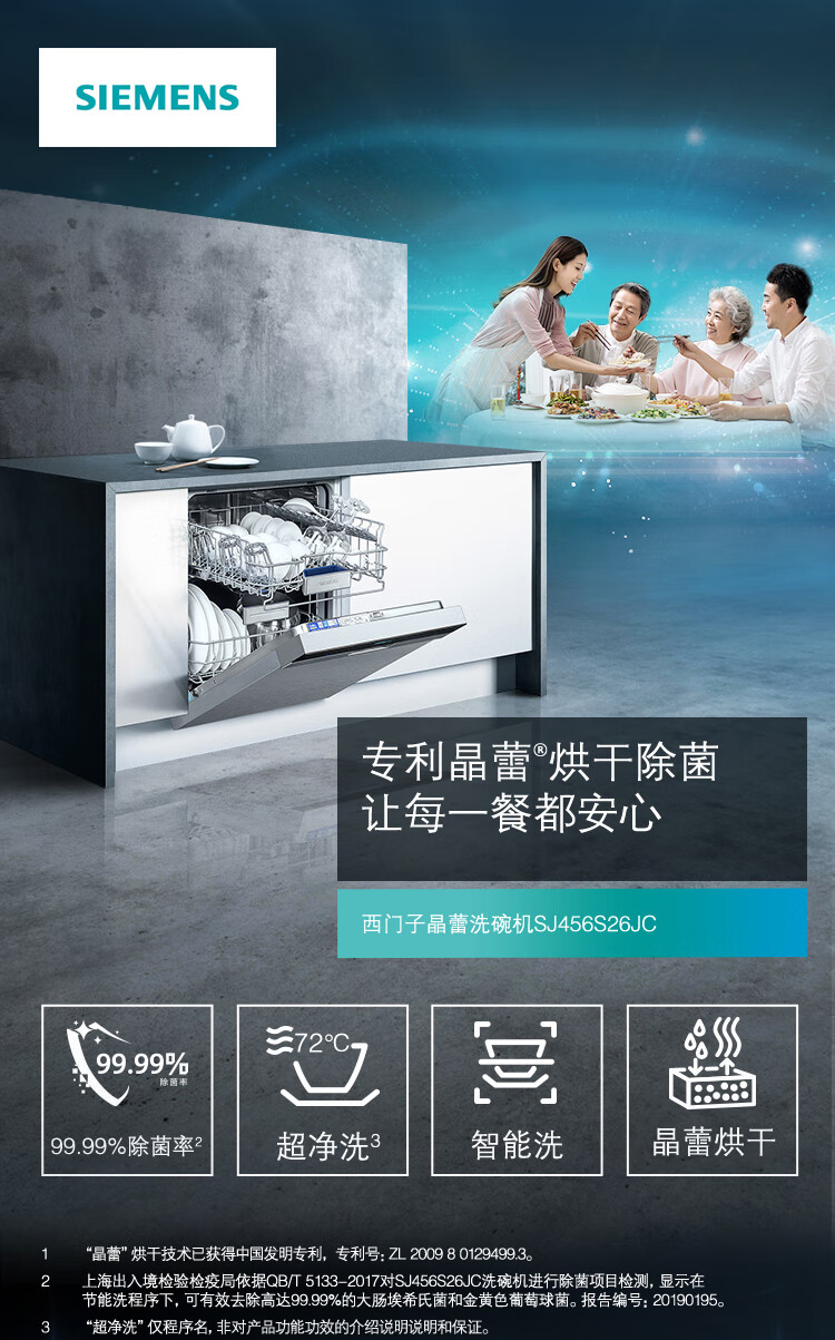 商品名称:西门子 (SIEMENS) 全自动家用洗碗机 嵌入式 专利晶蕾烘干 高温除菌 家居互联 12套 SJ456S26JC