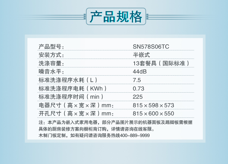 商品名称:西门子(SIEMENS)德国进口 8种洗涤 专利晶蕾烘干 家居互联 半嵌式家用洗碗机 (银色)13套 SN578S06TC