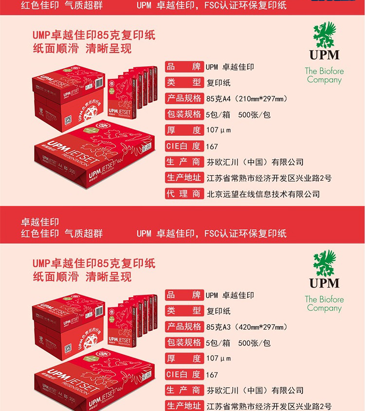 商品名称:卓越佳印(Jetset Presentation)A4/85G复印纸*500张/包 白色