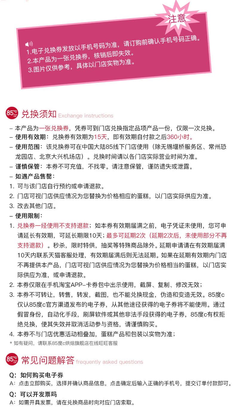 商品名称:85度C 生日聚会 新鲜蛋糕173元 提货券 【电子券】