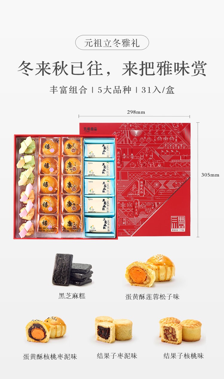 商品名称:元祖 零食 点心 糕点礼盒 坚果 蛋黄酥 零食小吃 霜降雅味礼盒