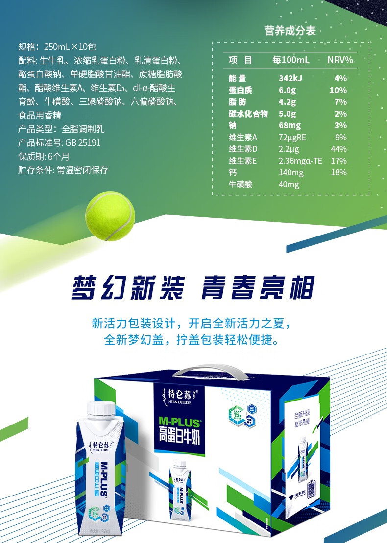 商品名称:蒙牛特仑苏M-PLUS高蛋白牛奶整箱装高钙牛奶学生成人早餐奶 M-PLUS高蛋白牛奶250ml*10包