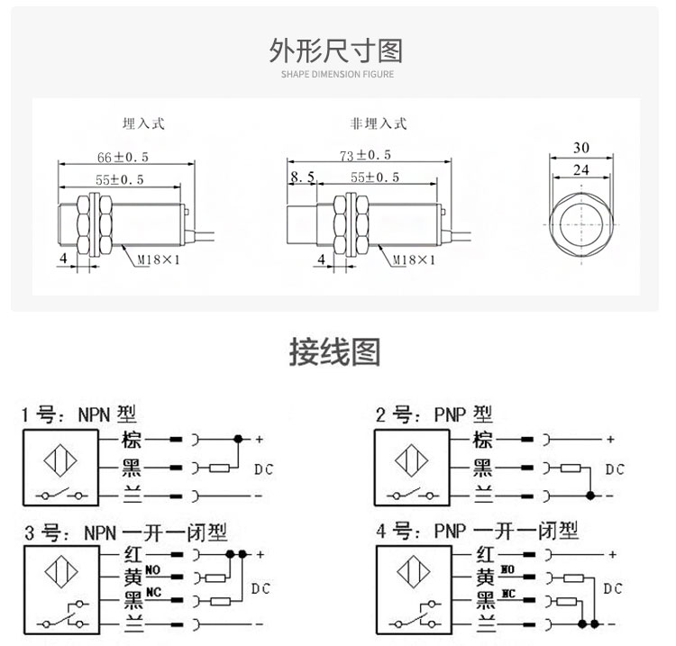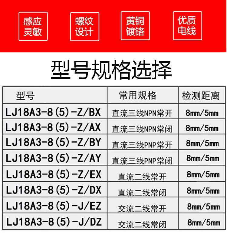 商品名称:沪龙 接近开关电感式NPN常开LJ18A3-8-Z/BX直流三线24V感应开关