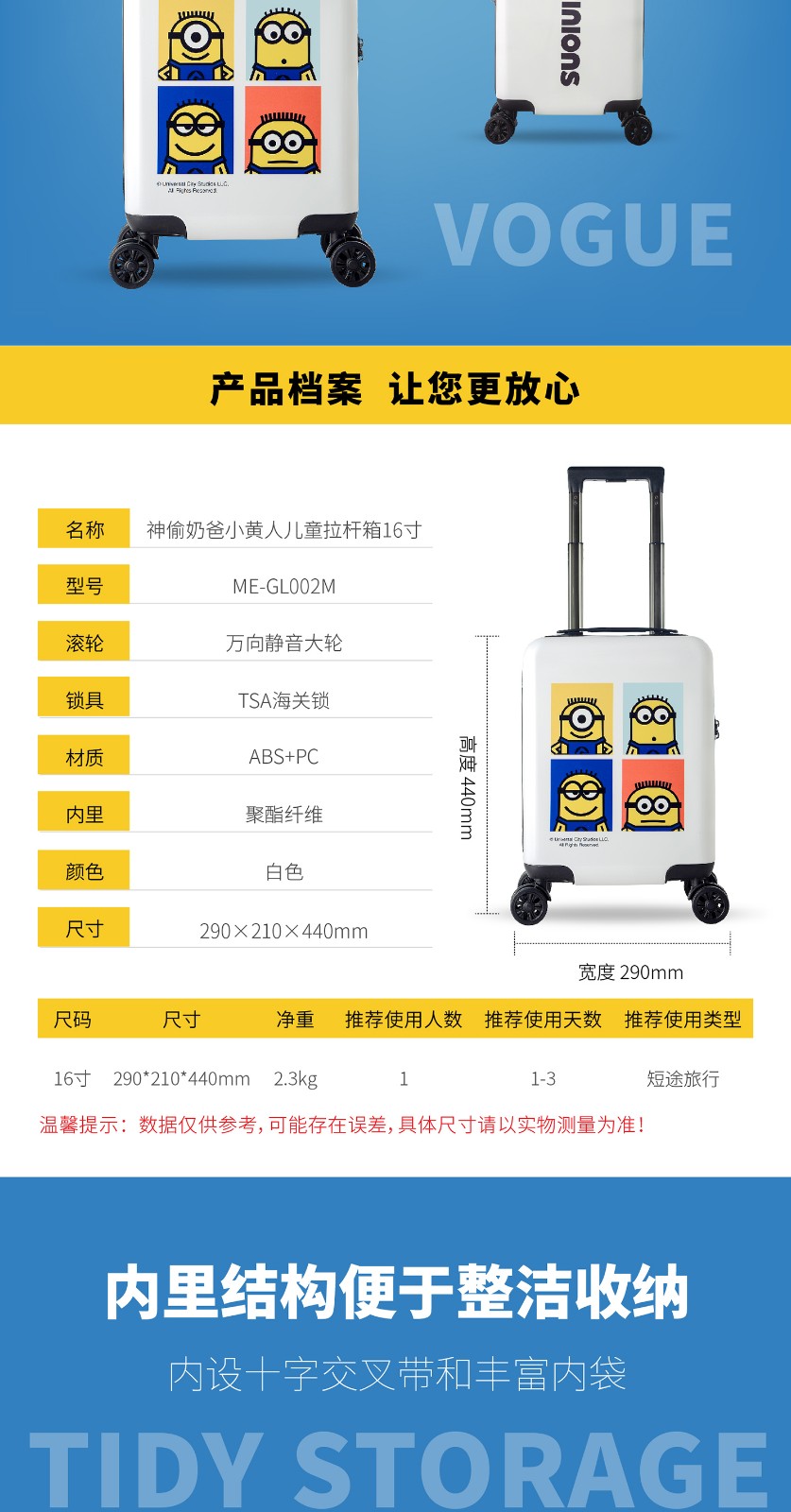商品名称:神偷奶爸 小黄人儿童拉杆箱16寸 ME-GL002M