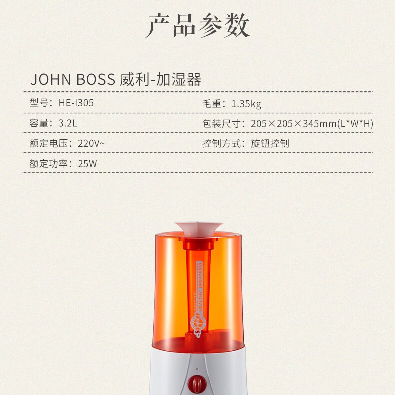 商品名称:JOHN BOSS 威利-加湿器 HE-I305