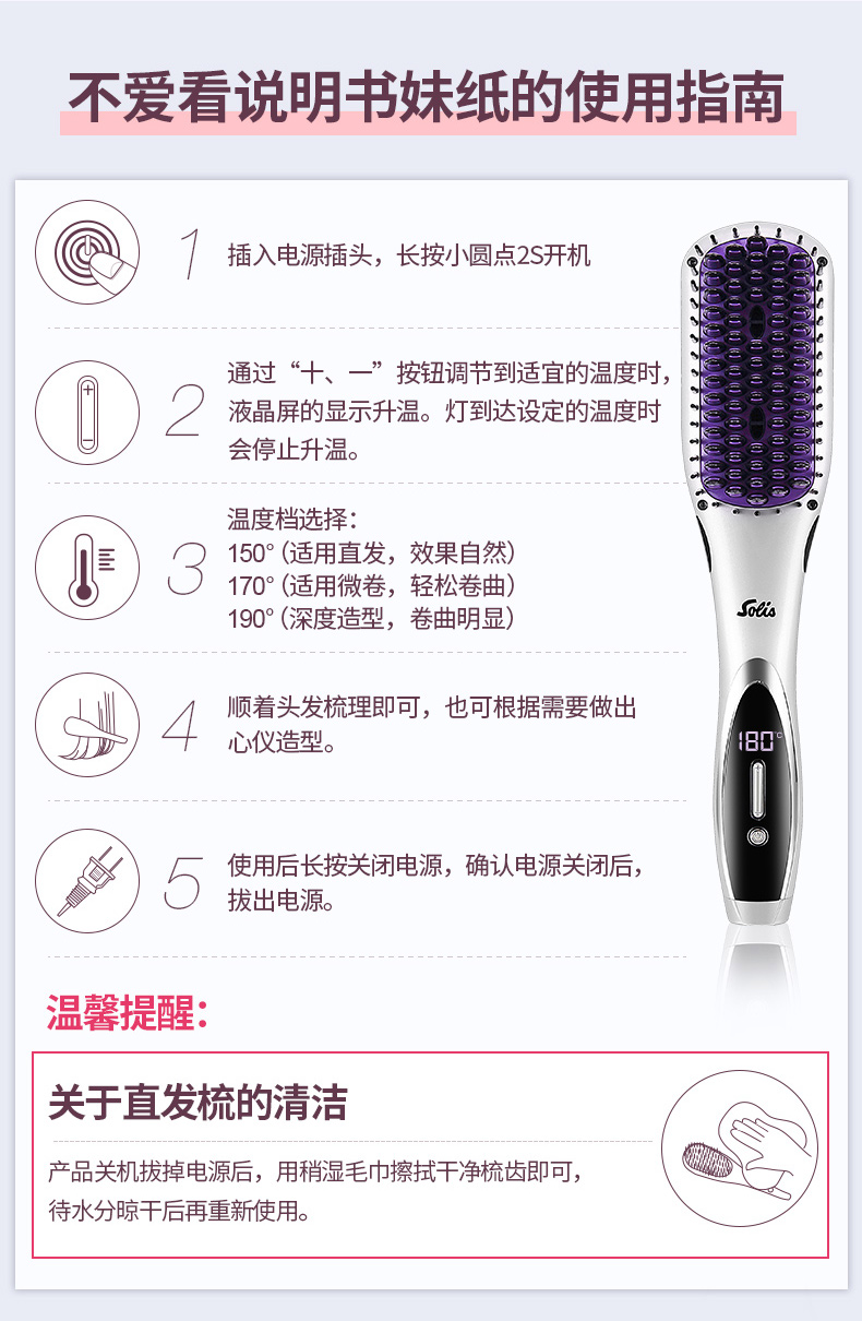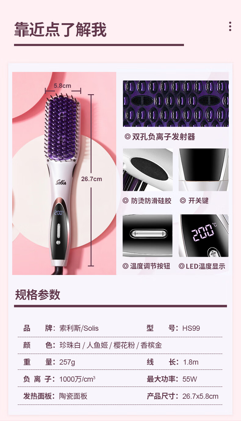 商品名称:SOlis索利斯负离子直发梳HS99 白色