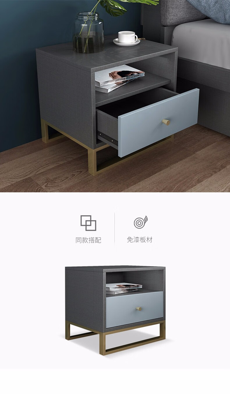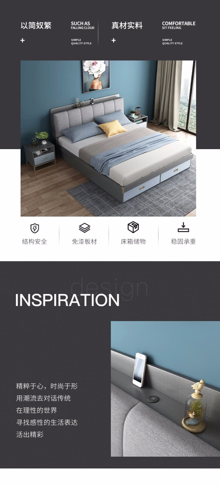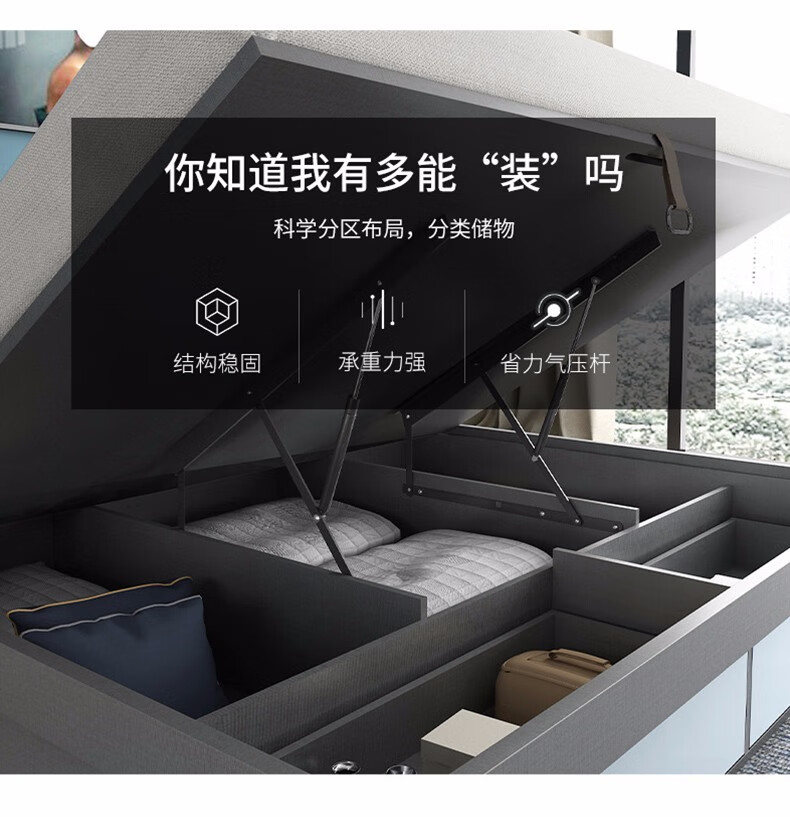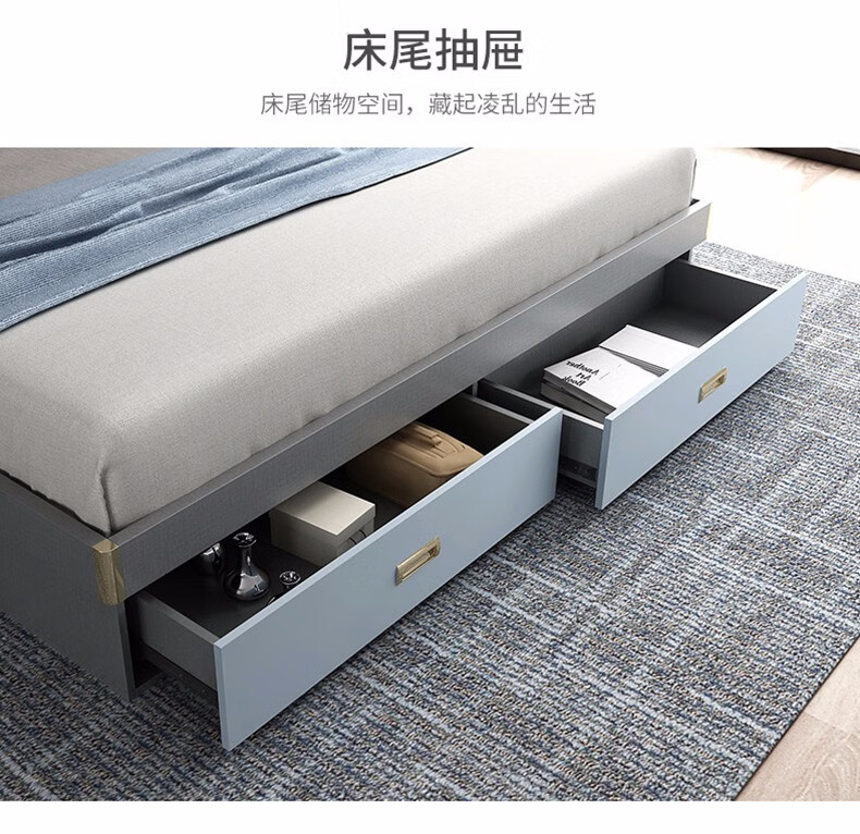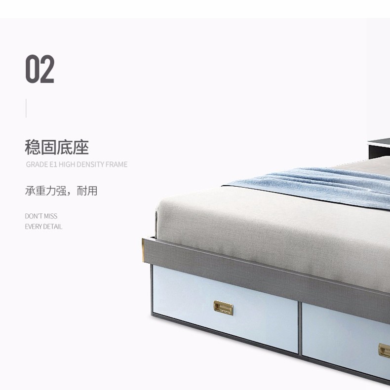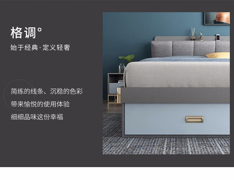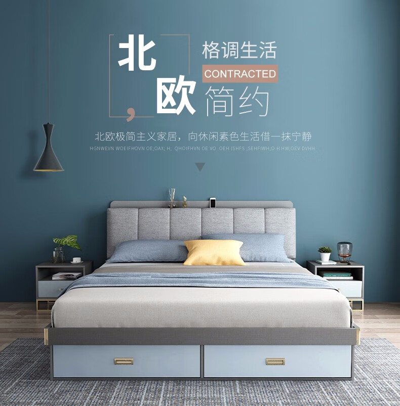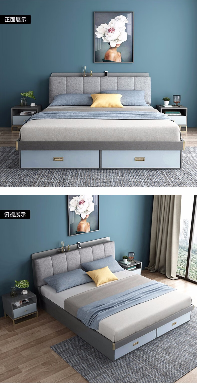 商品名称:欧宝美 北欧床简约现代双人床软靠高箱储物床 床+床头柜*1 1800*2000