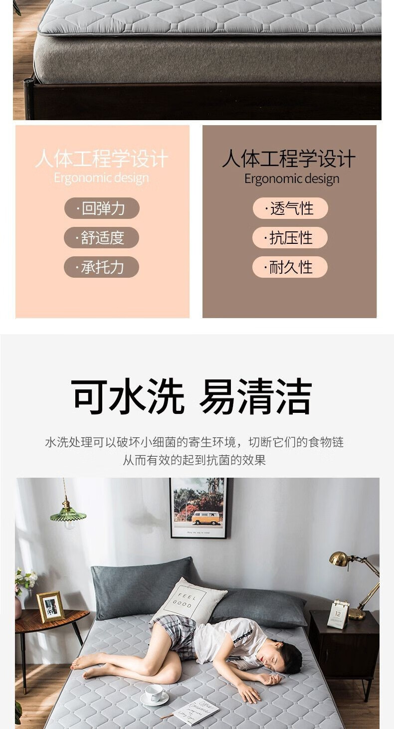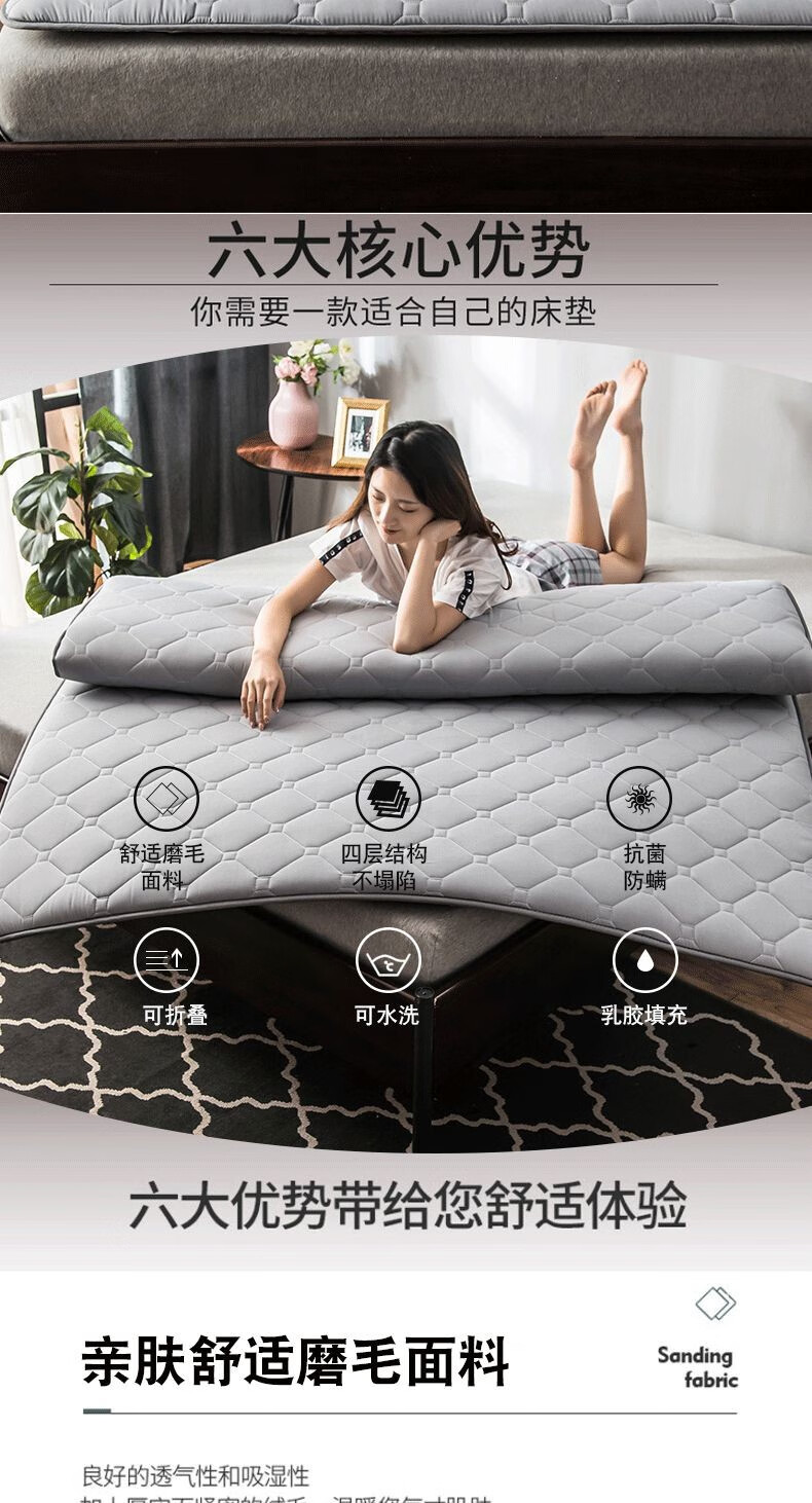 商品名称:南极人 乳胶床垫软垫榻榻米垫子床褥子硬垫宿舍单人海绵垫被 水银灰-普通款 180x200cm