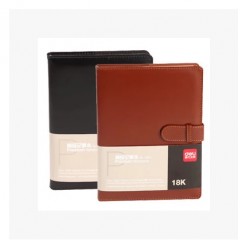 得力 7945防皮面记事本PU商务米黄道林纸办公插扣120页笔记本子18K