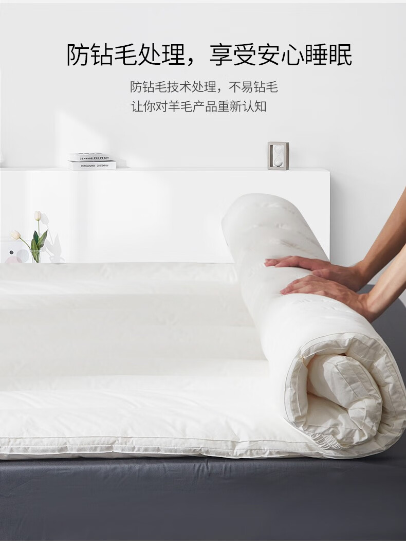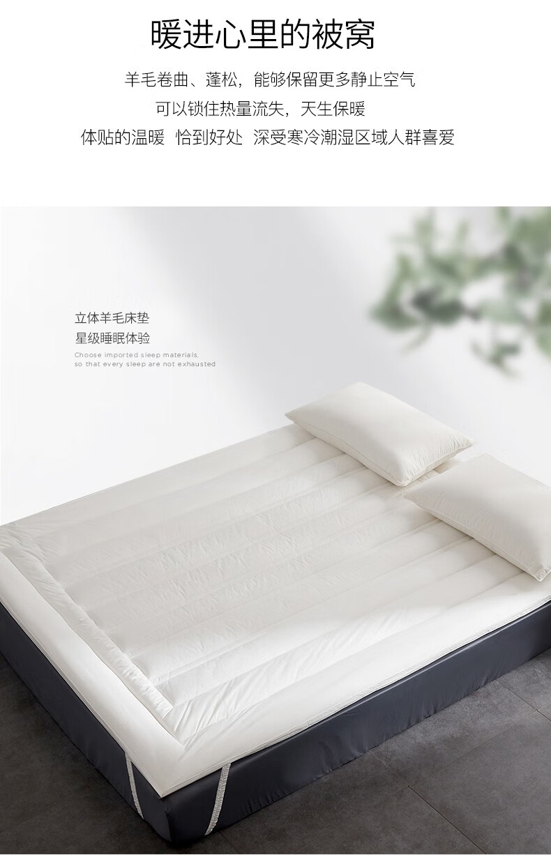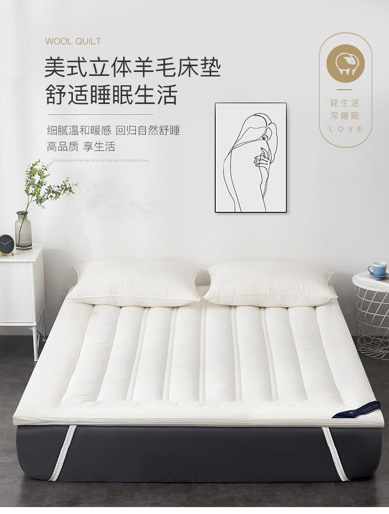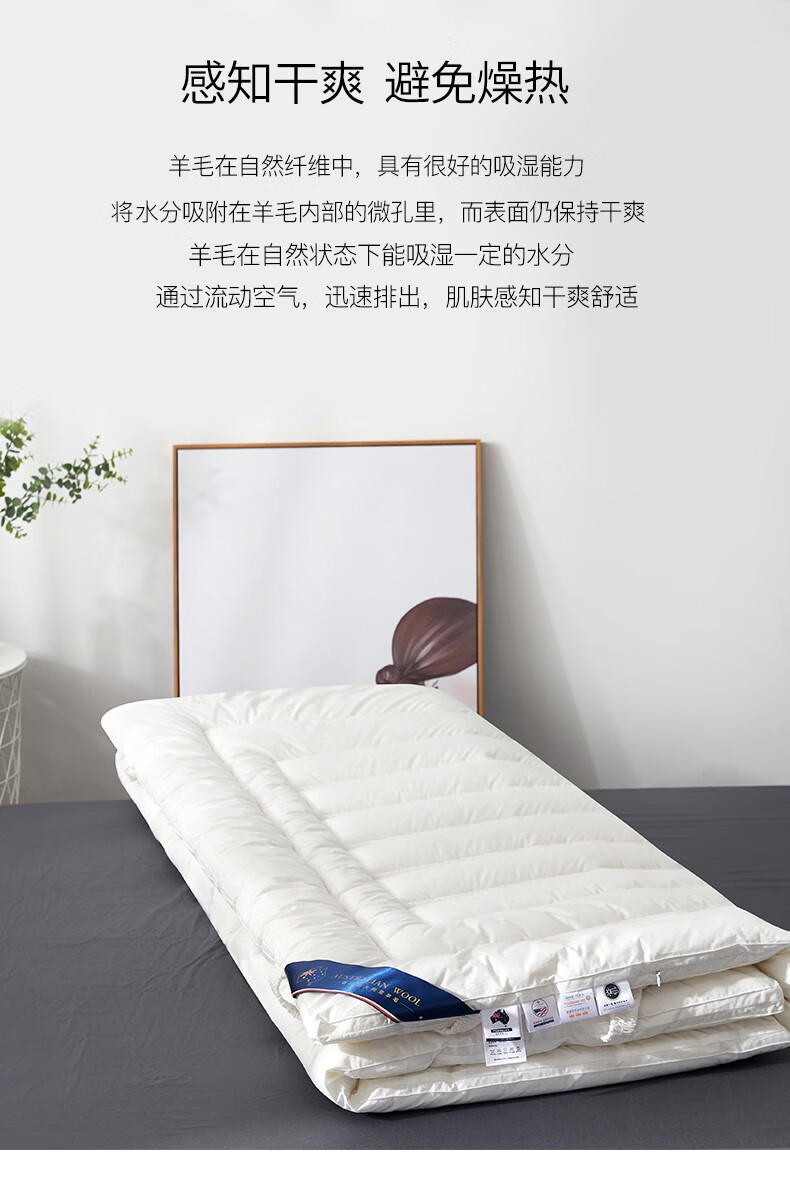 商品名称:南极人 羊毛床垫 美式立体澳州羊毛旅行便携保暖床褥子 白色 1.2*2.0m填充2000g