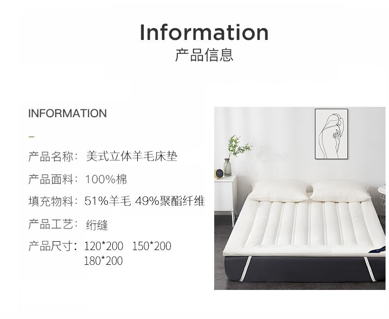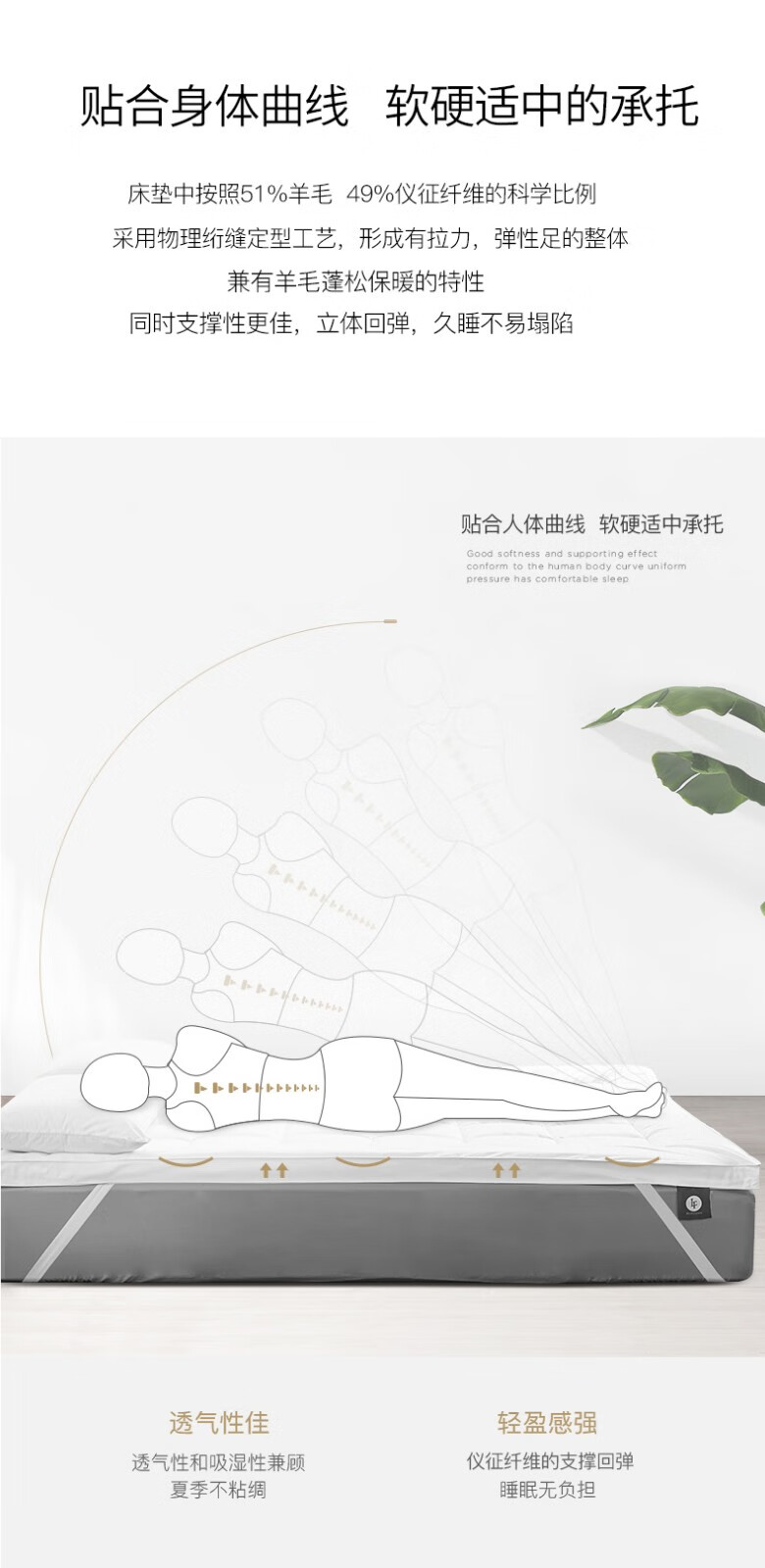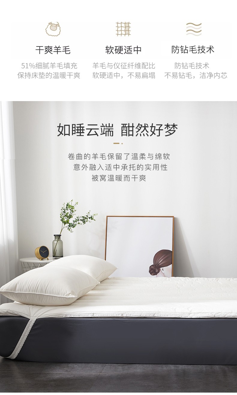 商品名称:南极人 羊毛床垫 美式立体澳州羊毛旅行便携保暖床褥子 白色 1.2*2.0m填充2000g