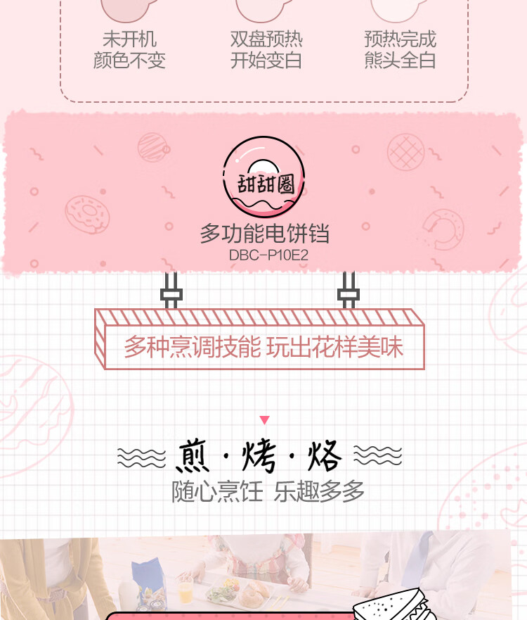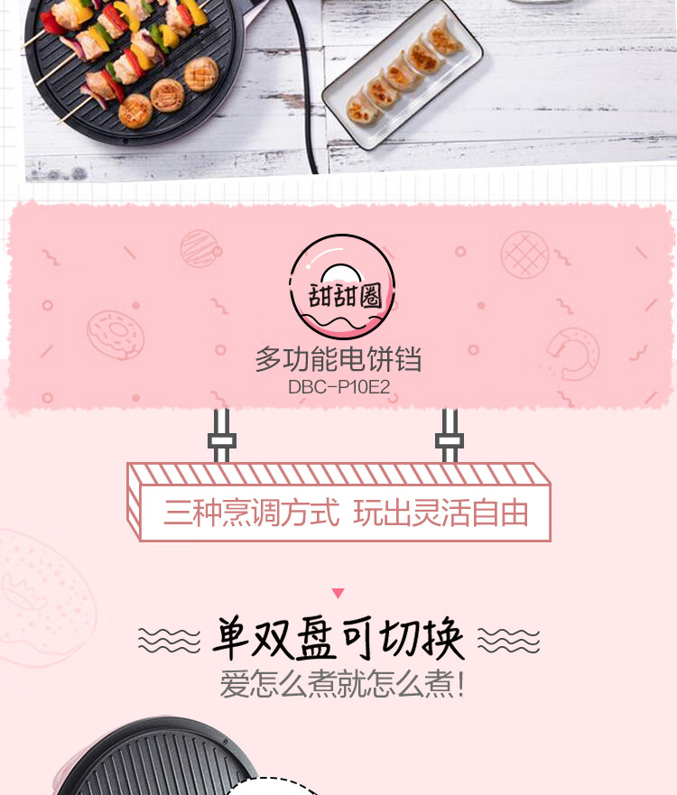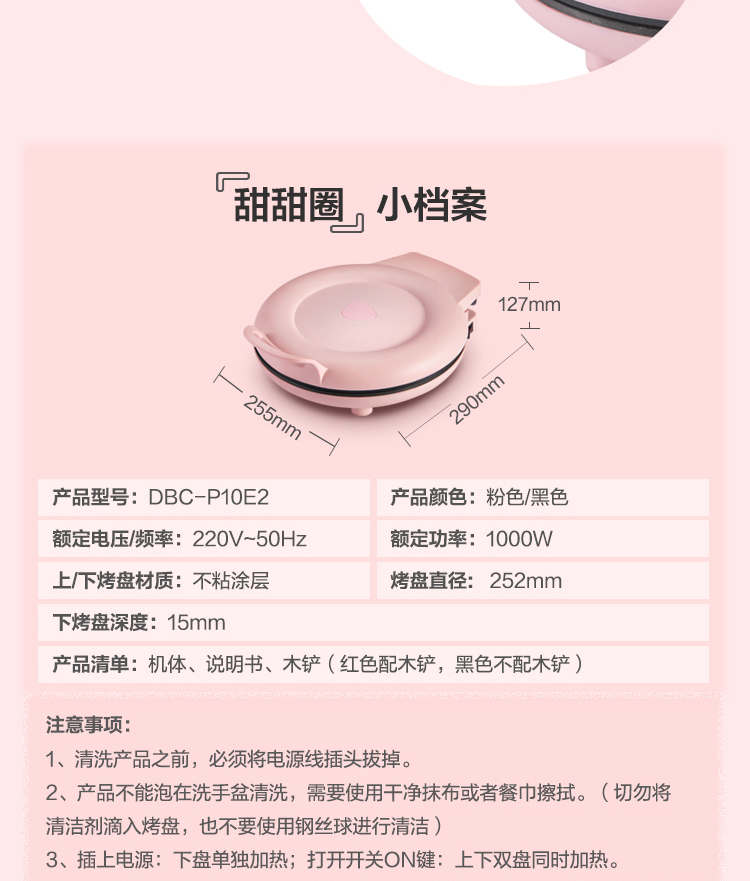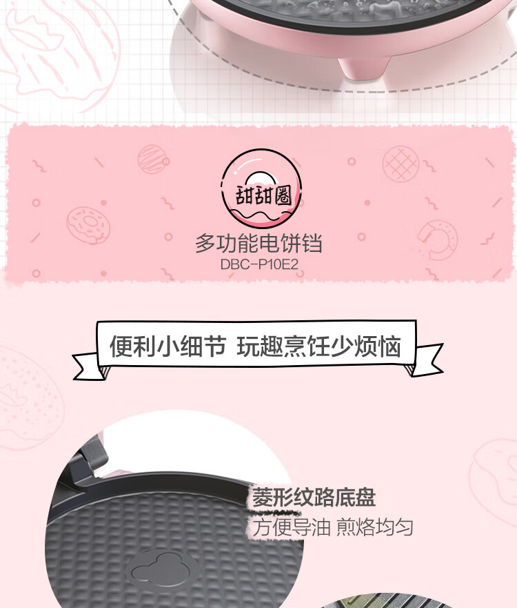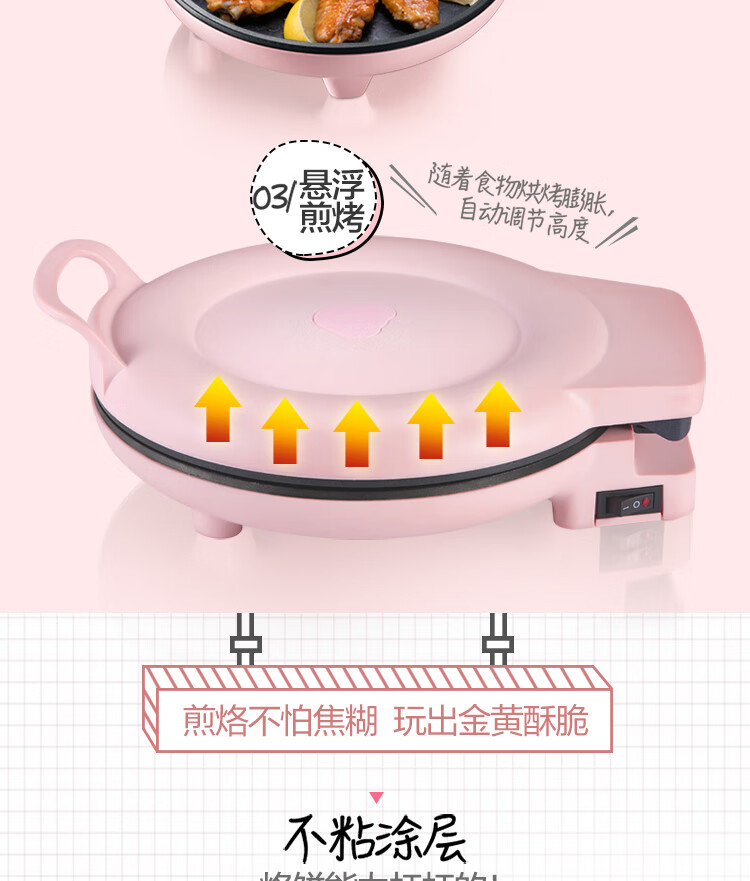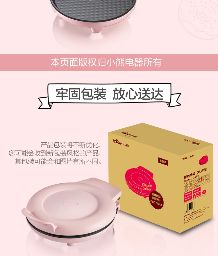 商品名称:小熊 悬浮式电饼铛 DBC-P10E2 粉色