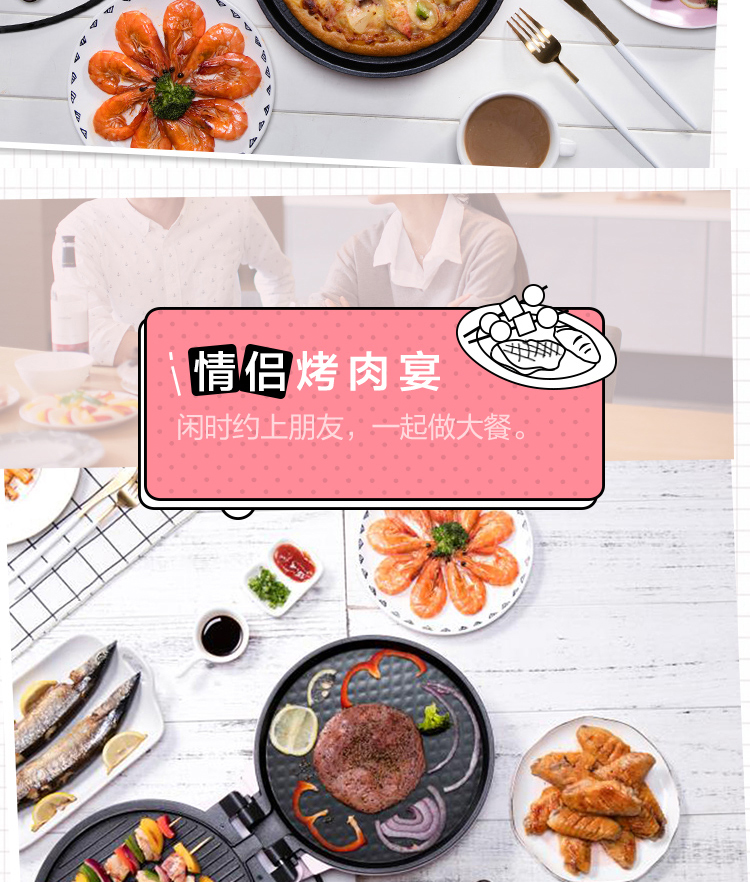 美的 MIDEA 双面悬浮煎烤机家用电饼铛JHN30E黑色