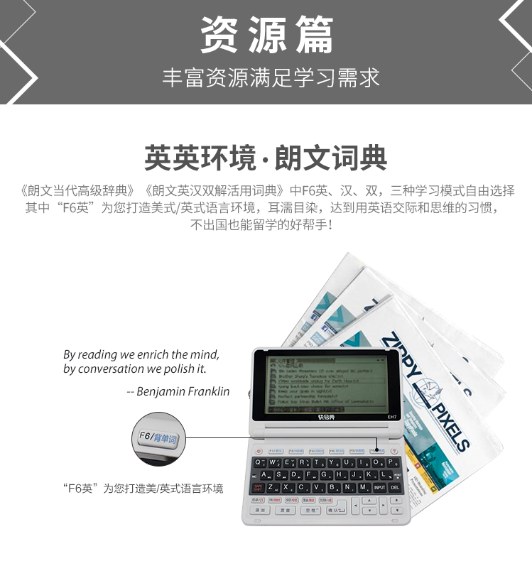 商品名称:快易典(Koridy)EH7 电子词典 中英辞典翻译机 学生考级英语辞典学习机 内置9国小语种词典 16G锂电版 黑色