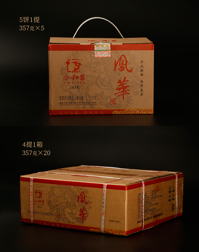 商品名称:合和昌 2018年凤华 普洱茶熟茶礼盒装饼茶357g布朗山生态乔木茶叶