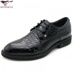 七匹狼 男鞋新款压花系带头层牛皮时尚线缝商务休闲皮鞋子