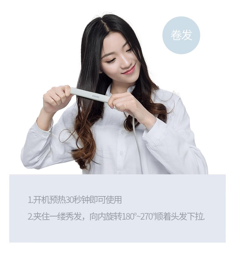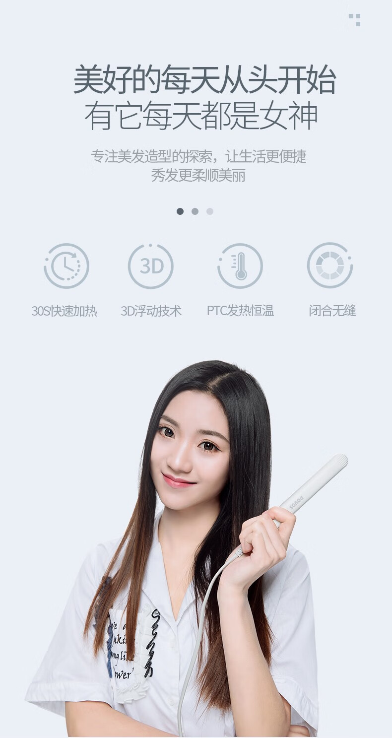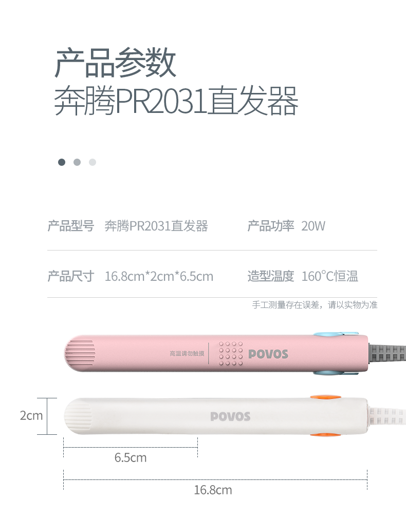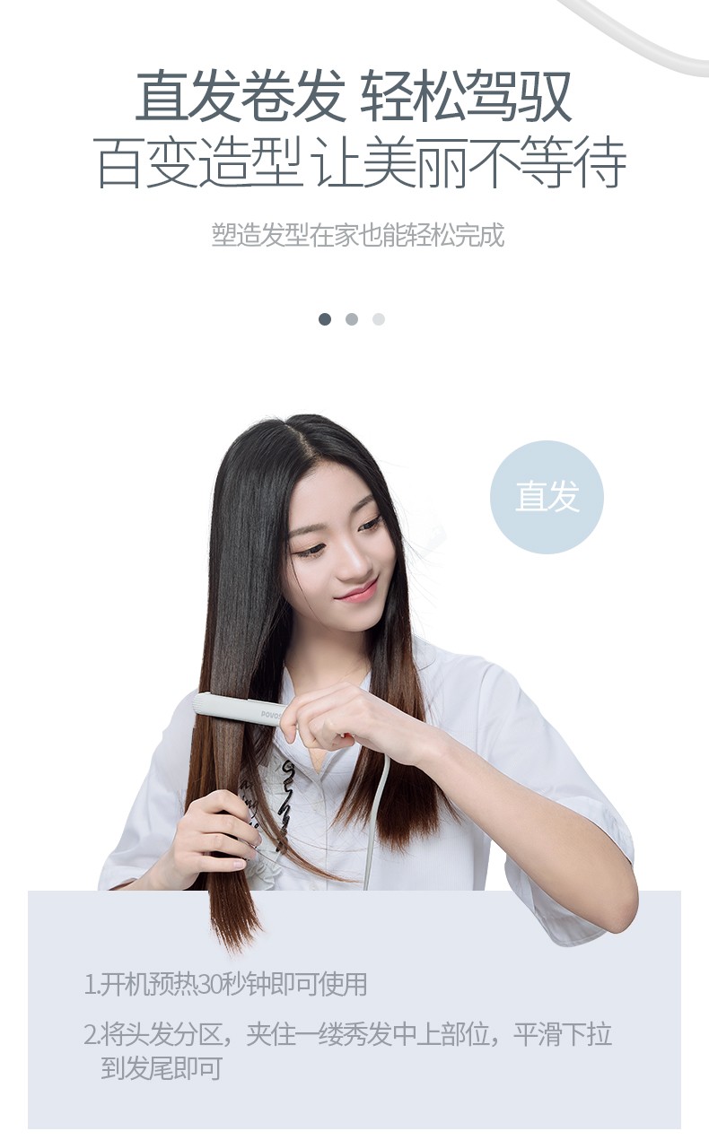 商品名称:奔腾(POVOS)直发器拉直夹板烫发器迷你便携卷发棒直发夹板 PR2031 白色