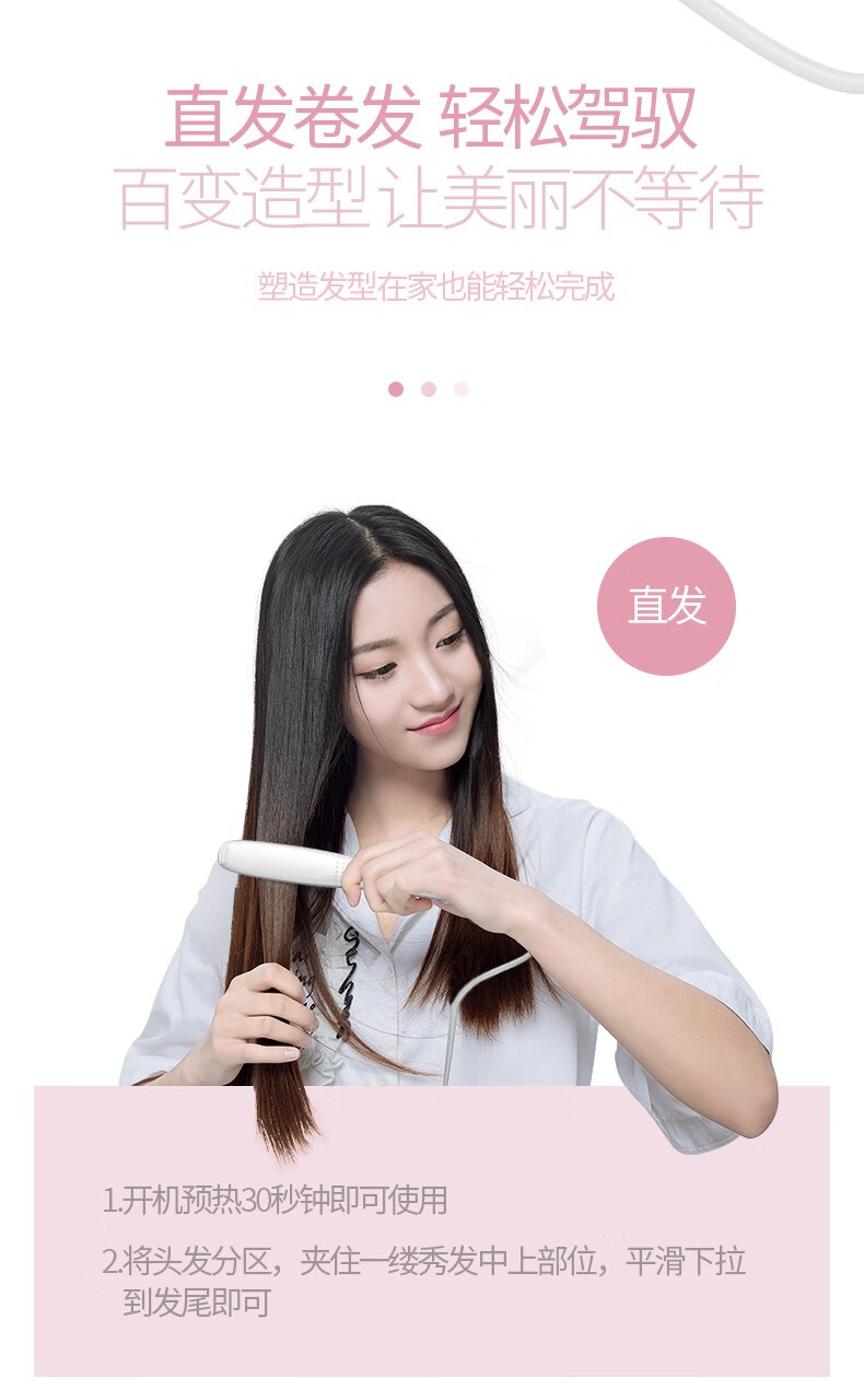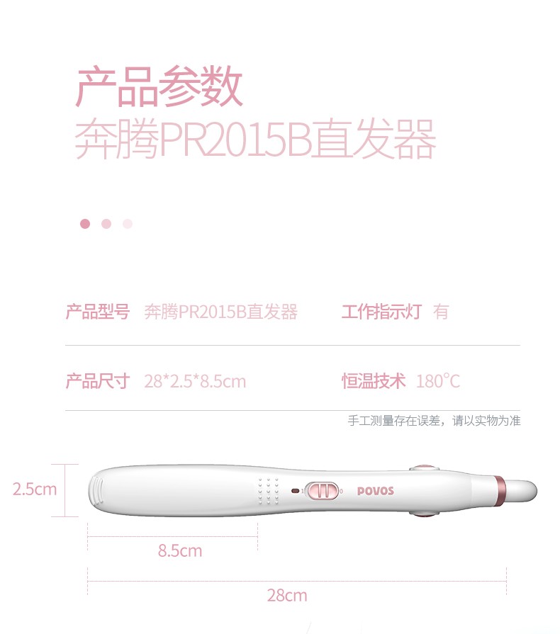 商品名称:奔腾(povos)电卷发棒宿舍小功率夹板内扣懒人神器直板夹刘海直发器 玫瑰金 PR2015B