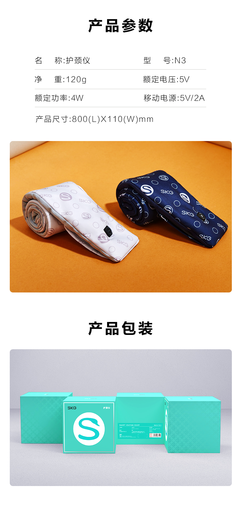 商品名称:SKG 发热围巾 护颈颈椎热敷加热围脖 智能防寒加热护颈围巾 藏蓝色 N3