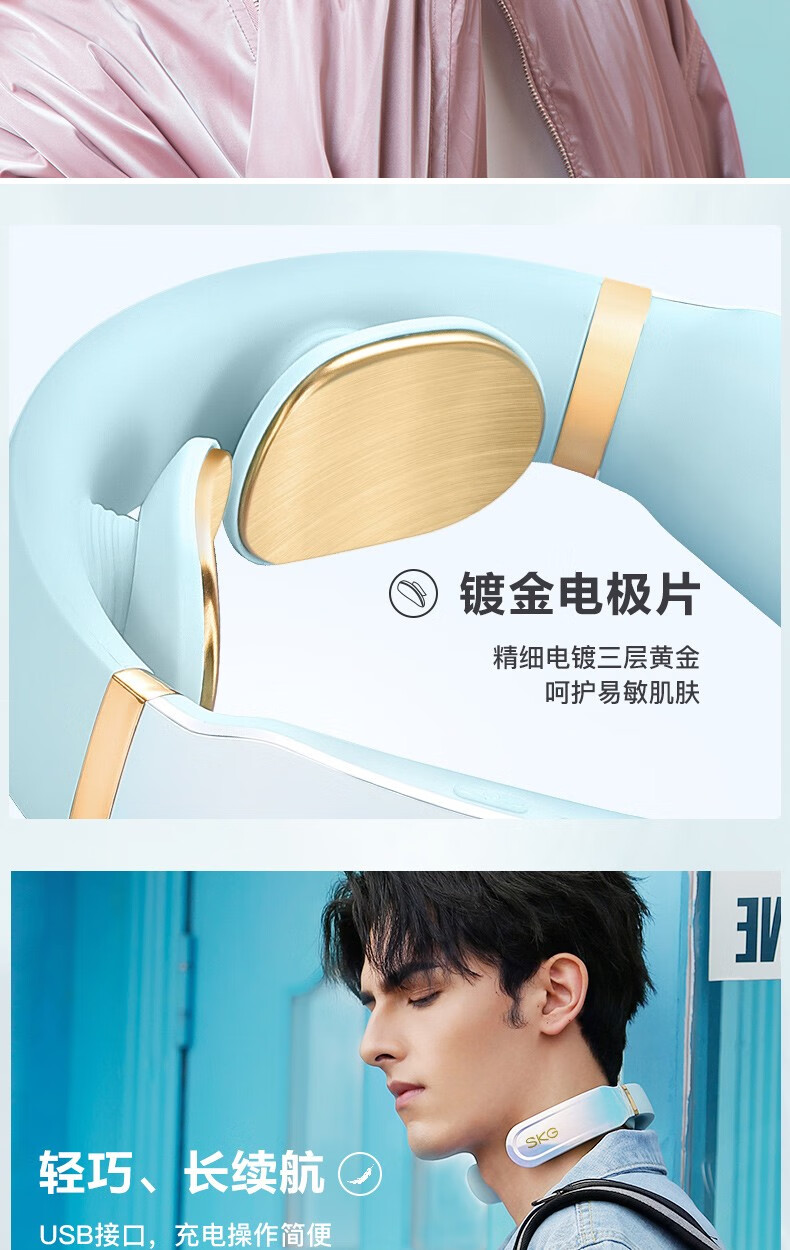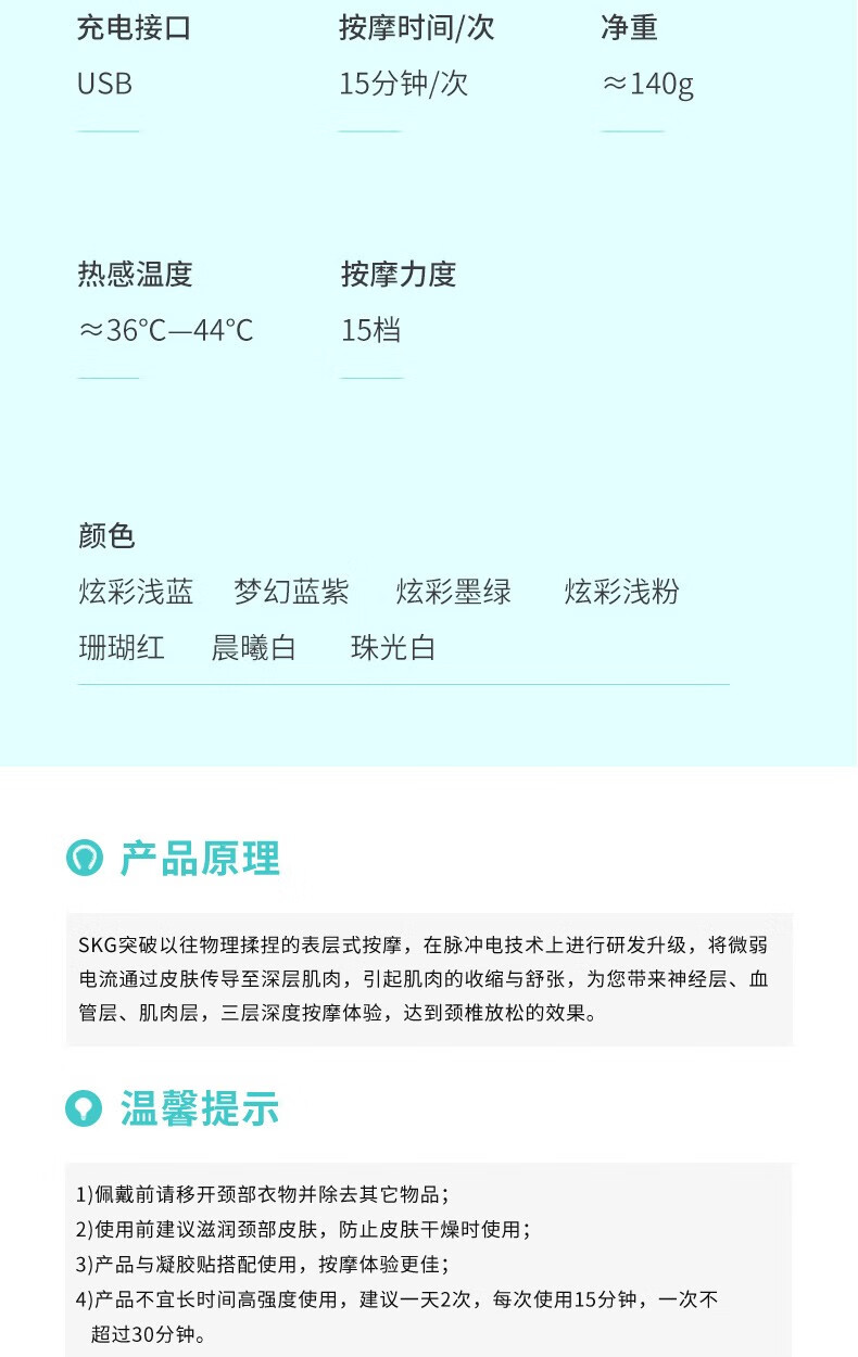 商品名称:SKG 颈椎按摩器 颈部按摩仪 脖子按摩器 办公室护颈仪 K6炫彩手机操控 炫彩浅粉