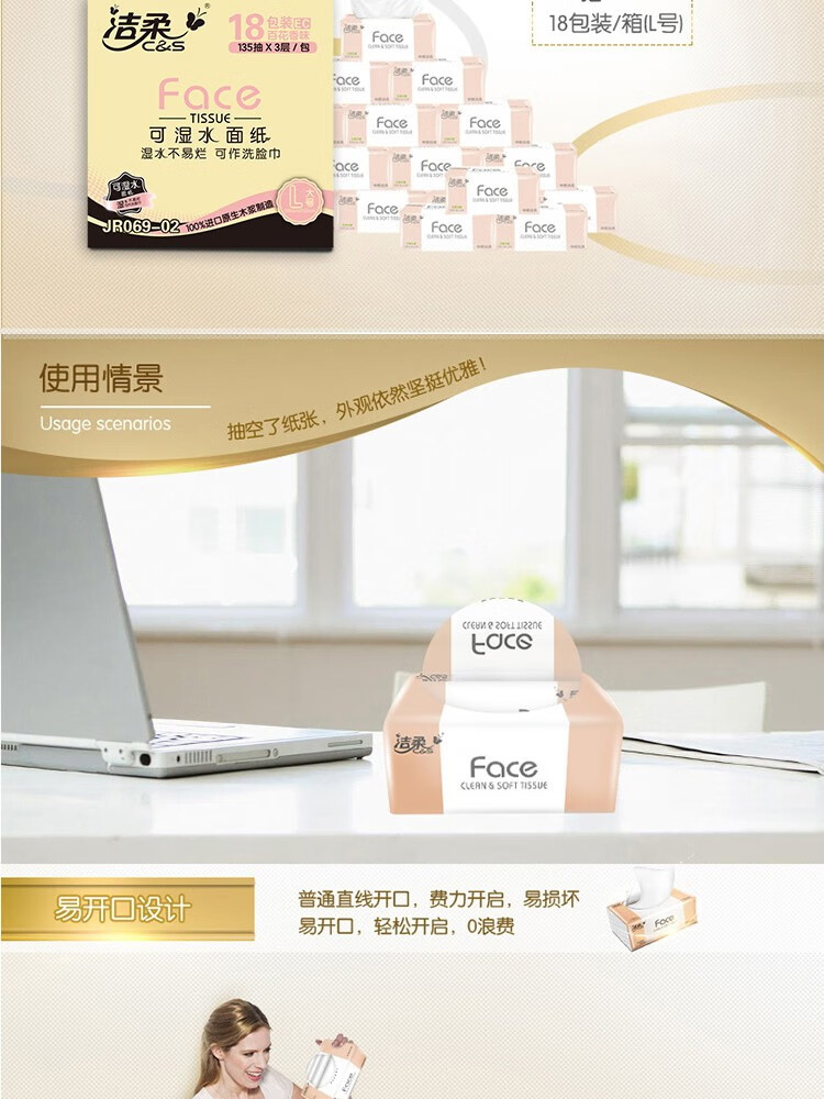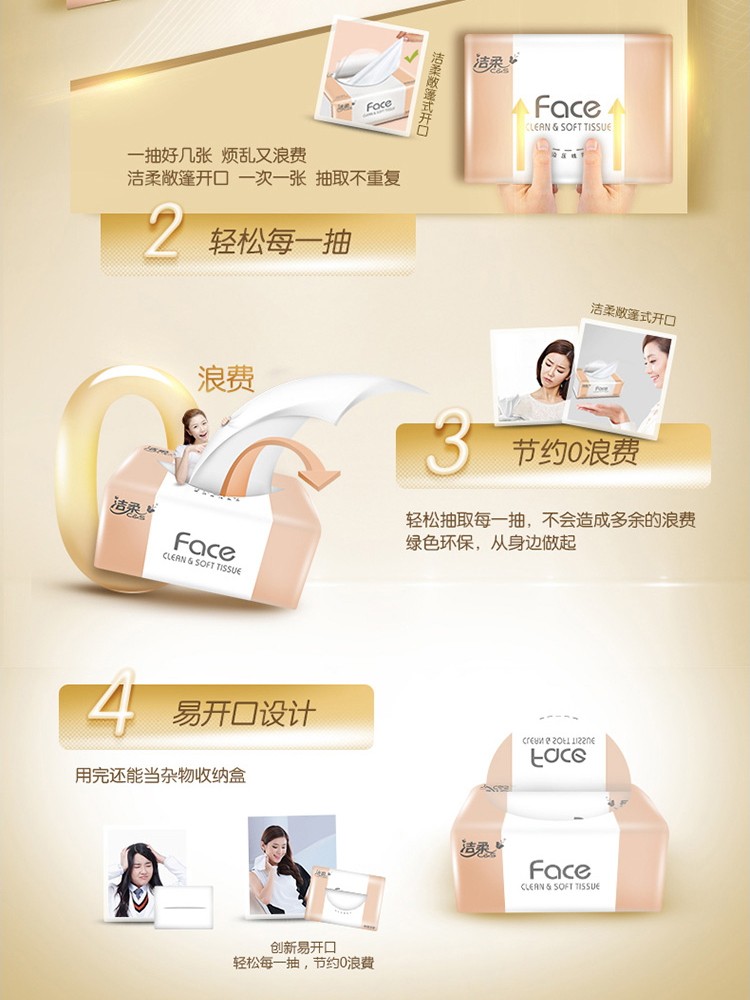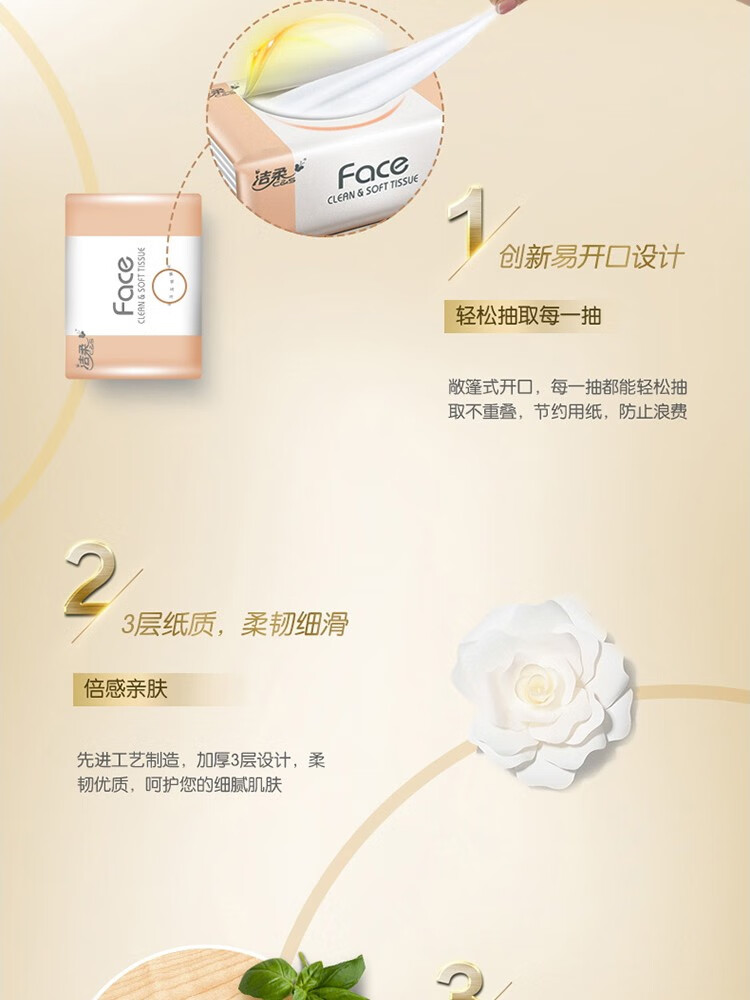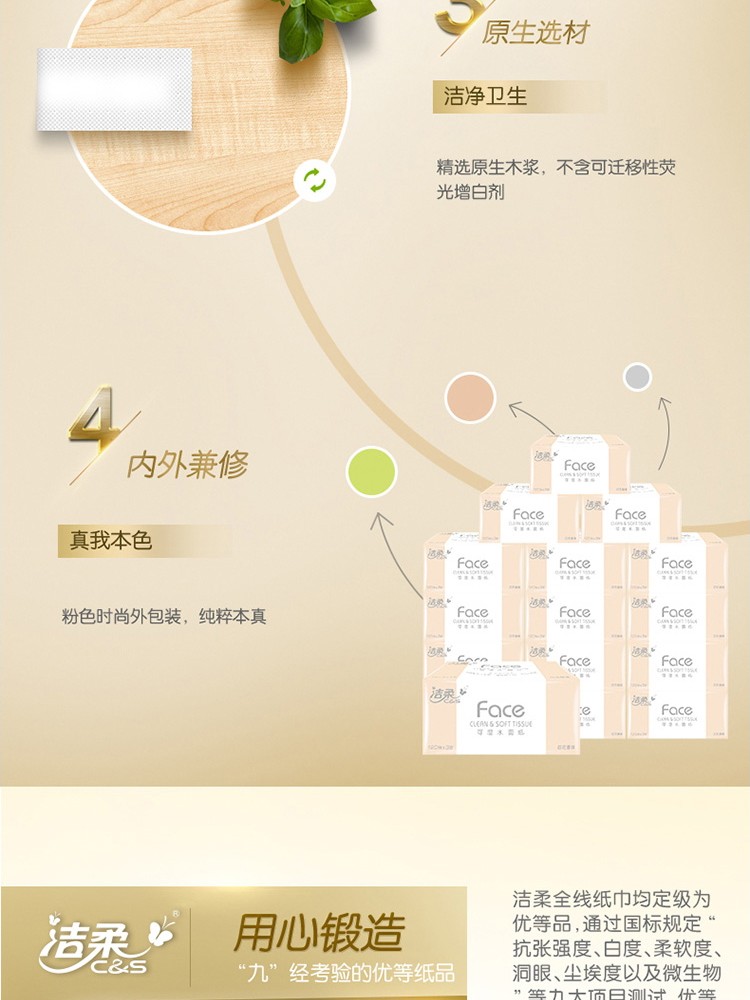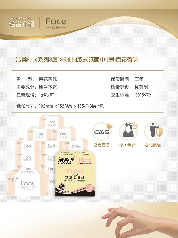 洁柔(C&S)-PR073-抽纸 粉Face 百花香3层120抽面巾纸*6包- 单位:提 -8提起订