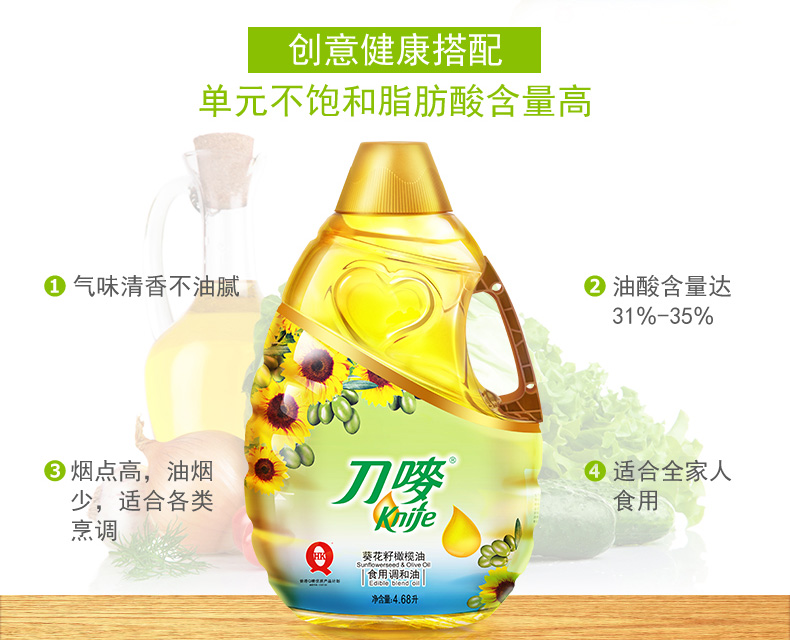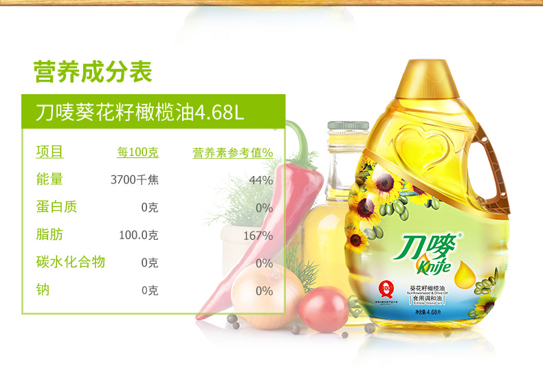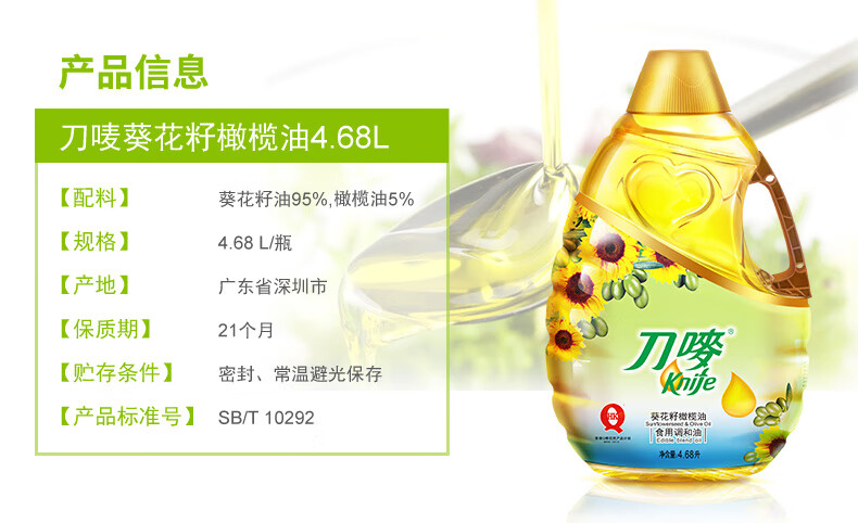 商品名称:刀唛(Knife)葵花籽橄榄油4.68L 香港名牌 食用油 植物调和油 葵花籽橄榄油4.68L