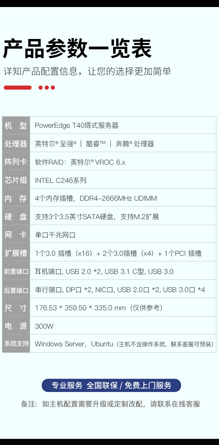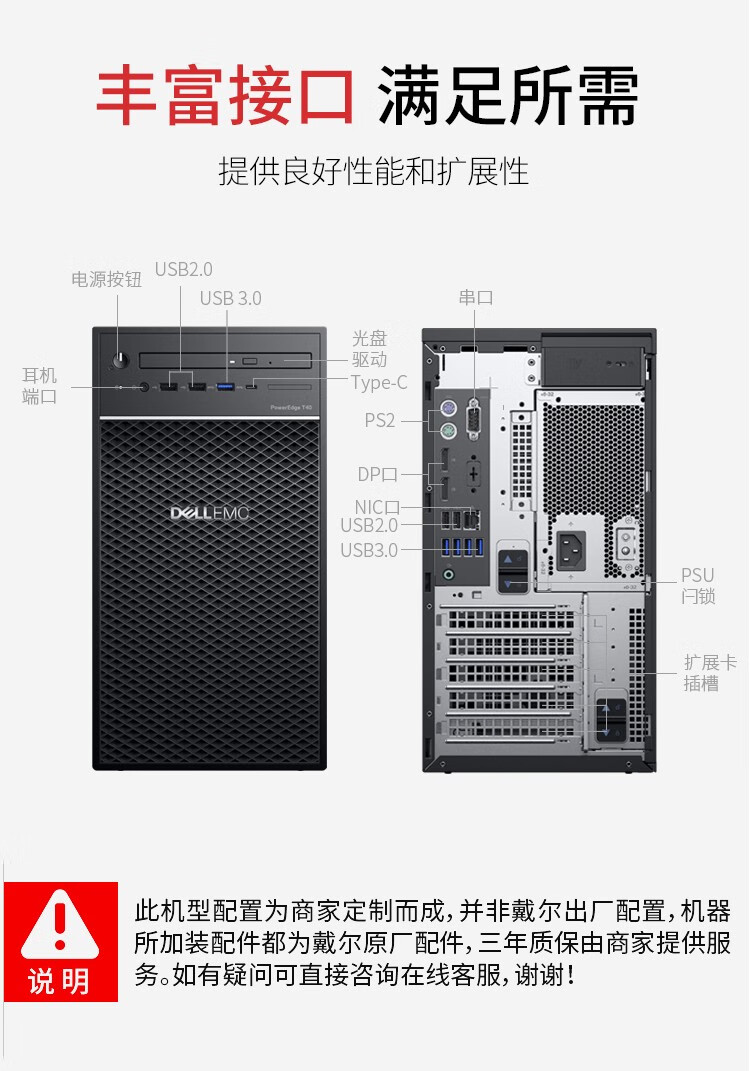 商品名称:戴尔(DELL)T40/塔式服务器 酷睿九代 i5-9500 16G内存 512G 固态硬盘 23.8三年有限上门保修 键/鼠
