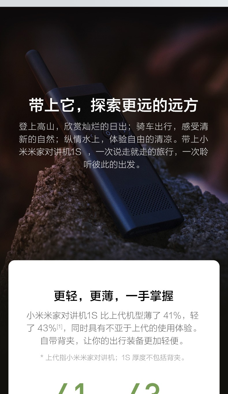 商品名称:小米(MI) 对讲机1S FM收音机位置共享民用迷你手台8天超长待机 小米米家对讲机1S 白色