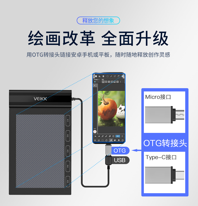 绘客(VEIKK)T10 数位板可连接手机手绘板智能手写板电脑绘图板电子绘画板