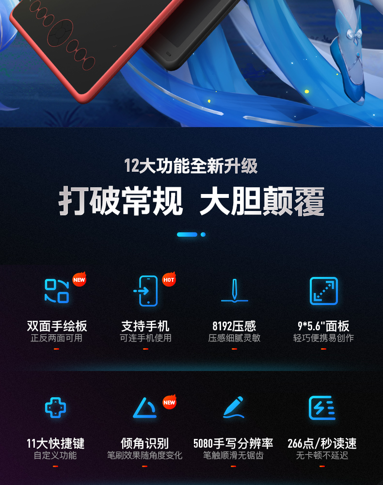 绘王(HUION) H320M 数位板可连接手机绘图板写字手写板电脑绘画手绘板珊瑚红