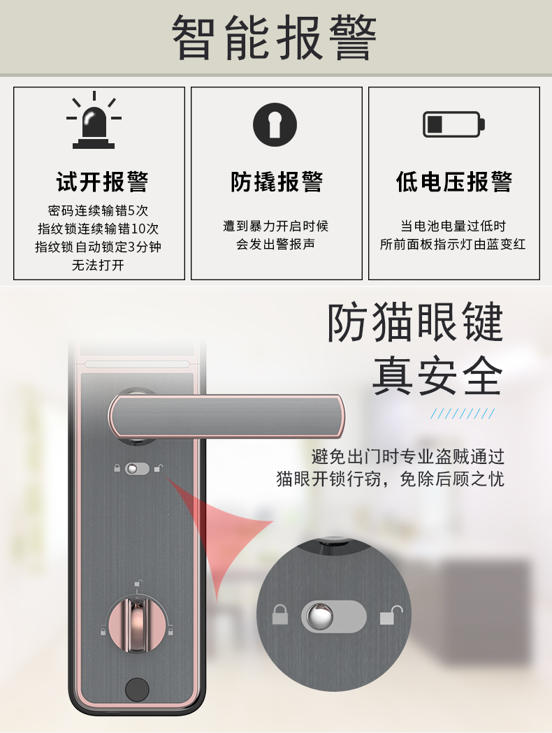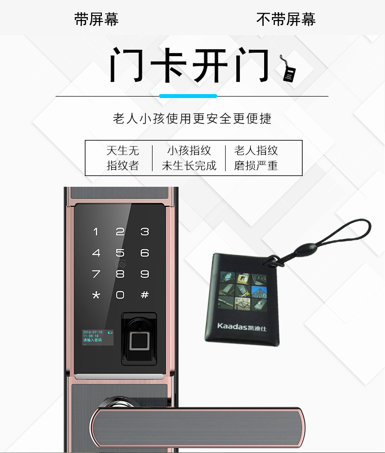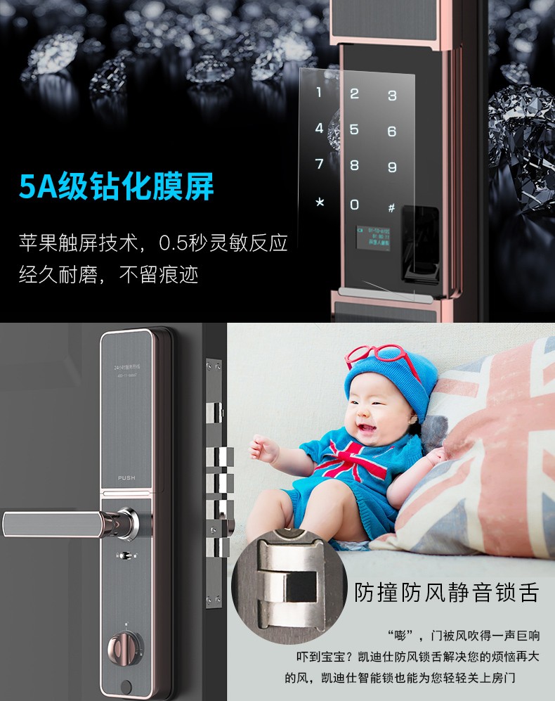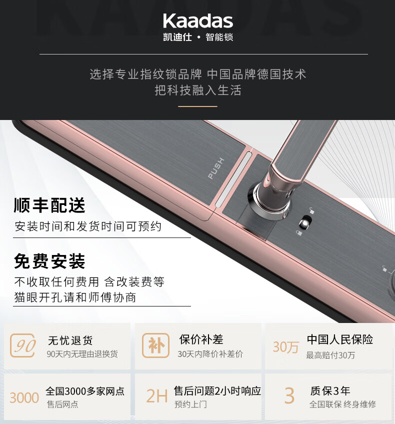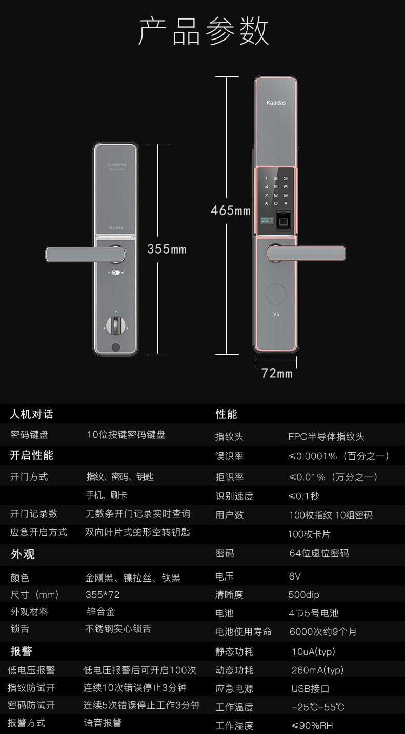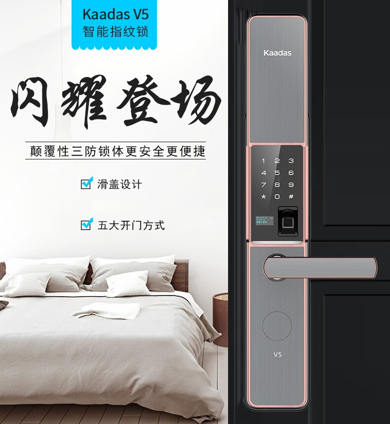 凯迪仕(KAADAS) 指纹锁 智能锁密码锁 家用防盗门指纹锁 电子锁密码锁智能门锁 镍拉丝 V5
