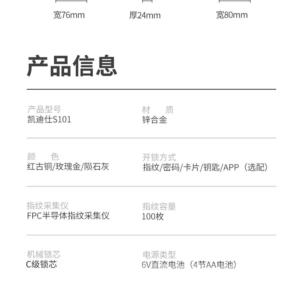 商品名称:凯迪仕(KAADAS) 智能锁指纹锁家用防盗门锁 密码锁电子锁智能门锁 陨石灰 S101