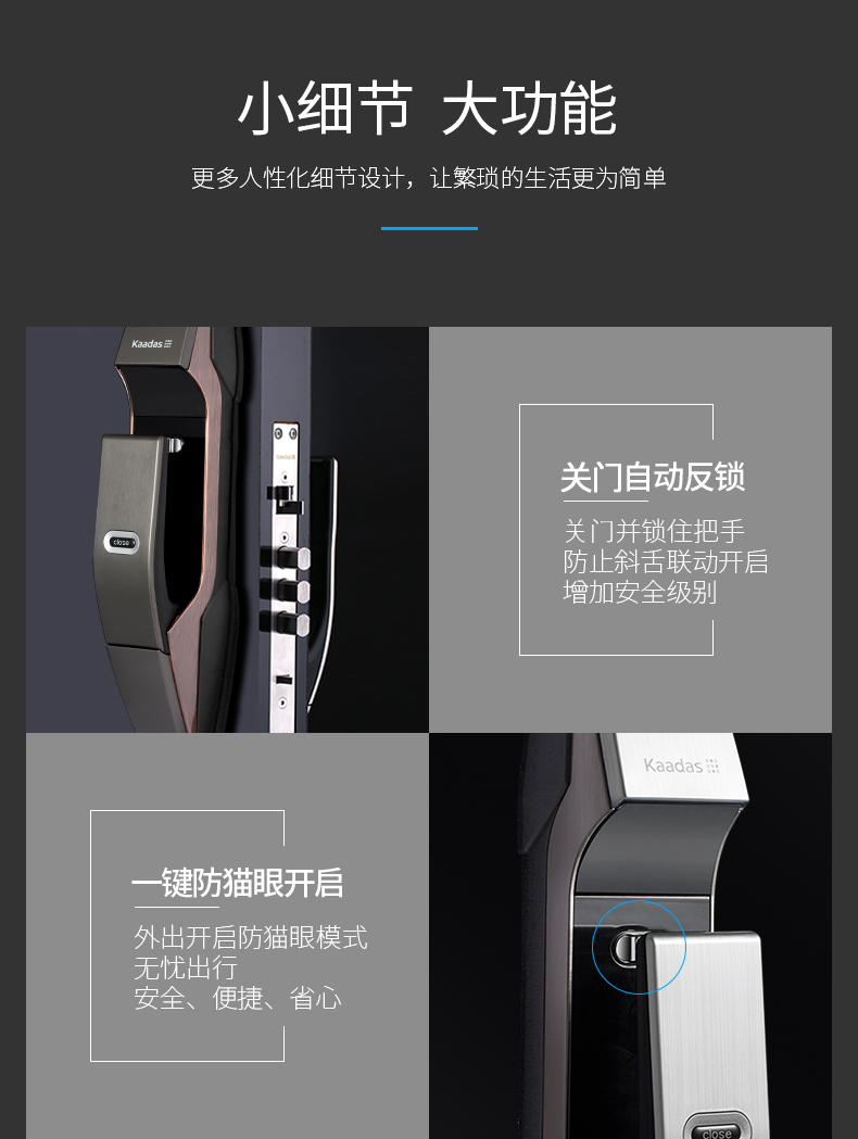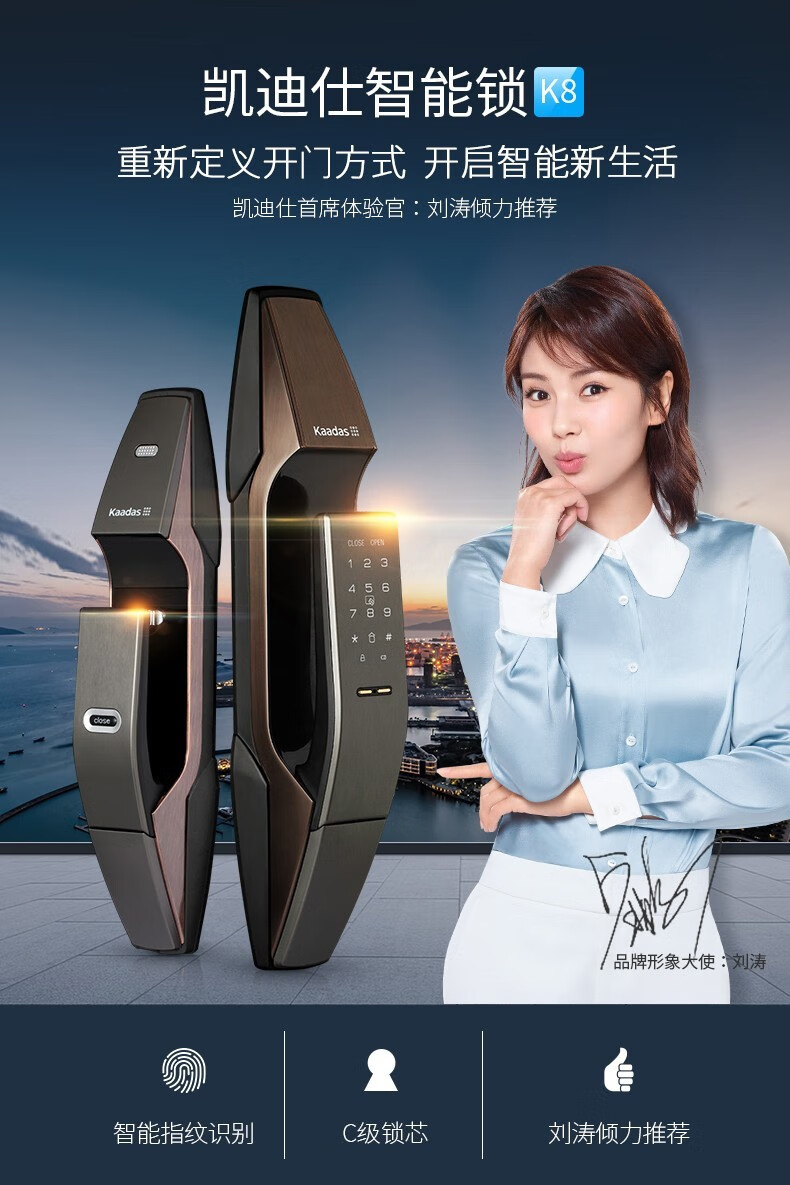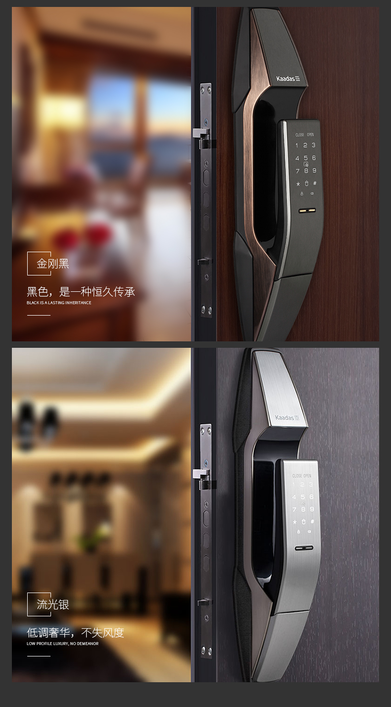 凯迪仕(KAADAS) 指纹锁 密码锁智能锁防盗门锁 家用防盗门锁 电子锁密码锁智能门锁 金刚黑 K8