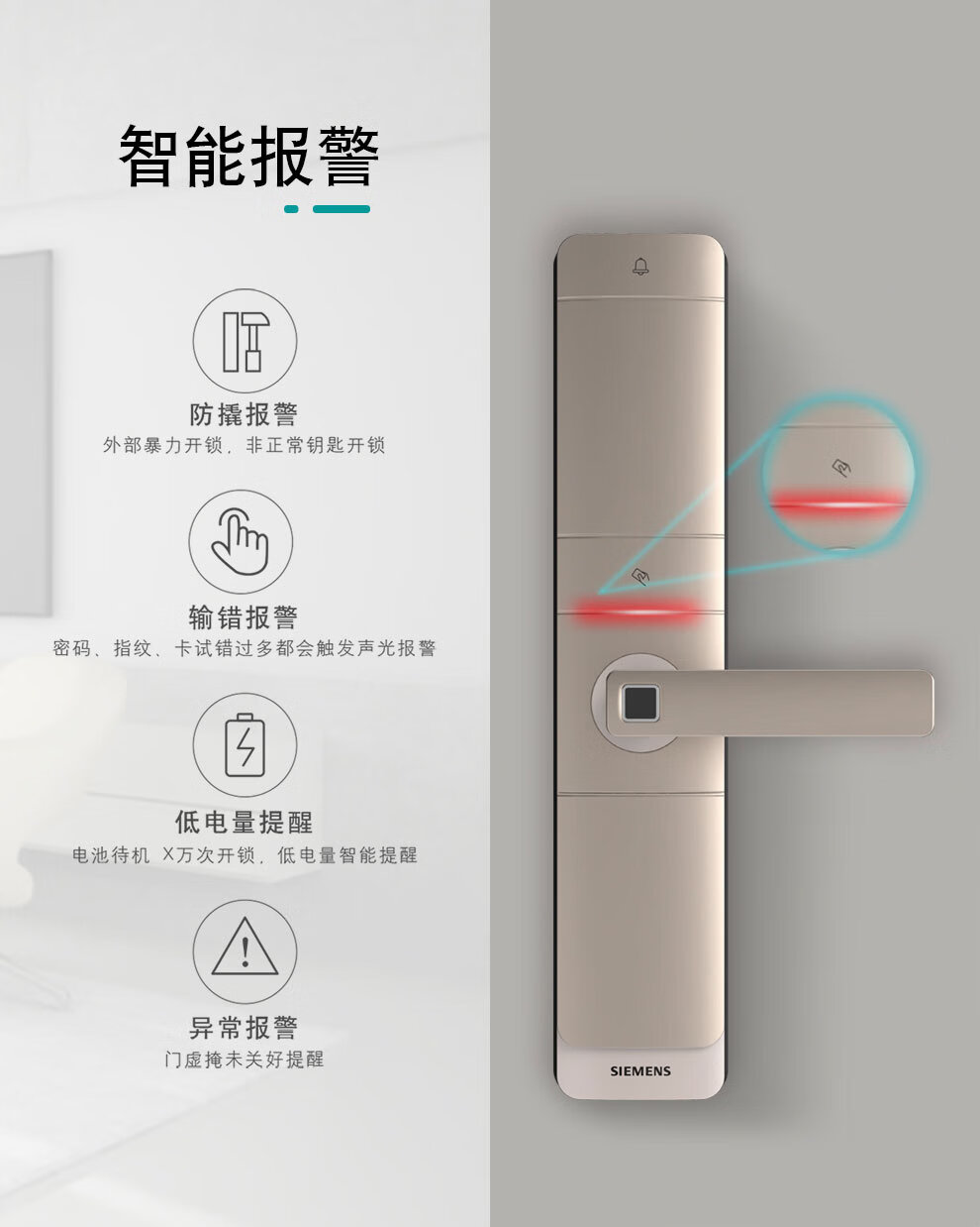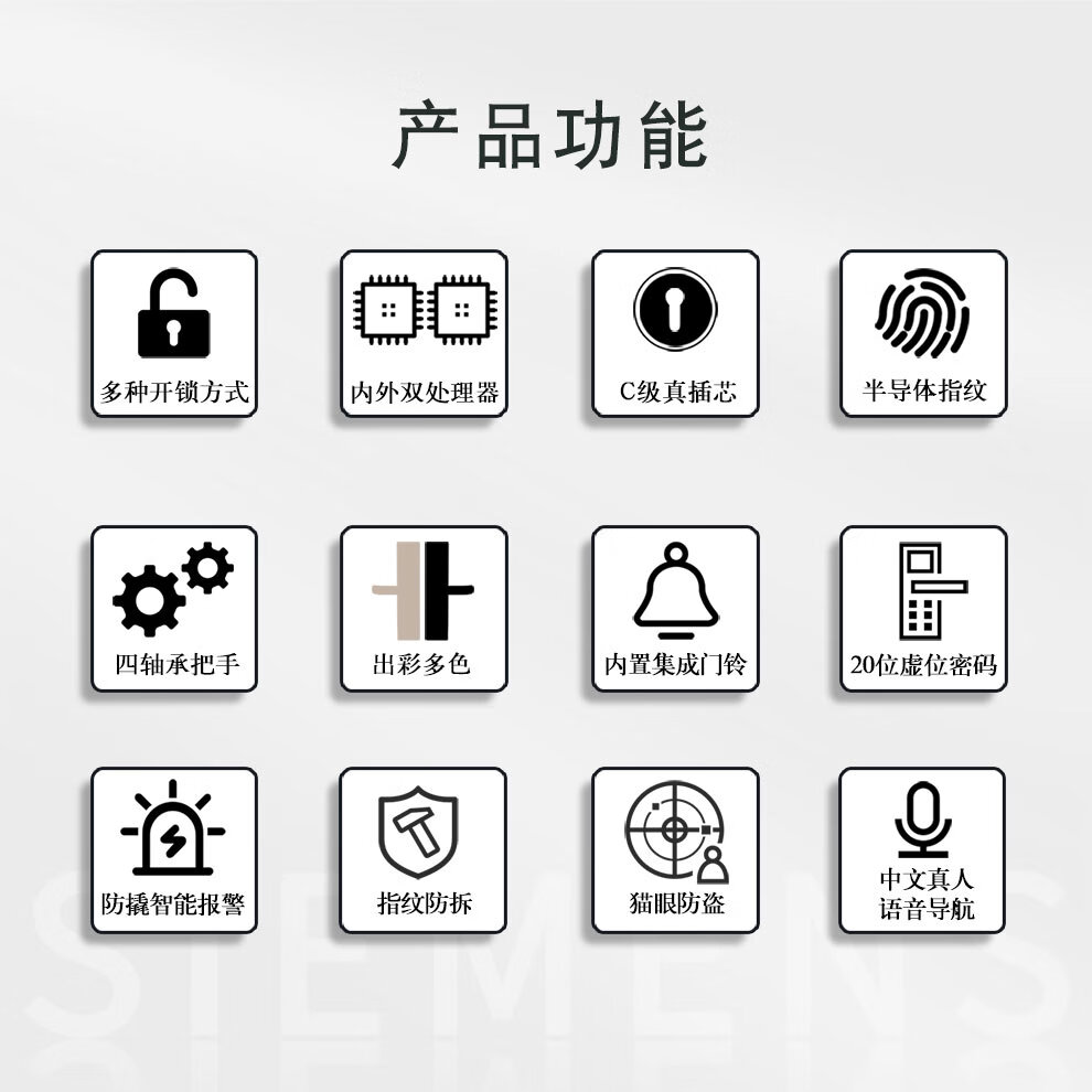 商品名称:西门子 指纹锁 智能锁家用防盗门锁密码锁 电子锁 C320 玄铁黑