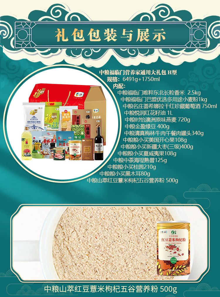 商品名称:中粮 福临门营养家通用大礼包 H型 6491g+1750ml