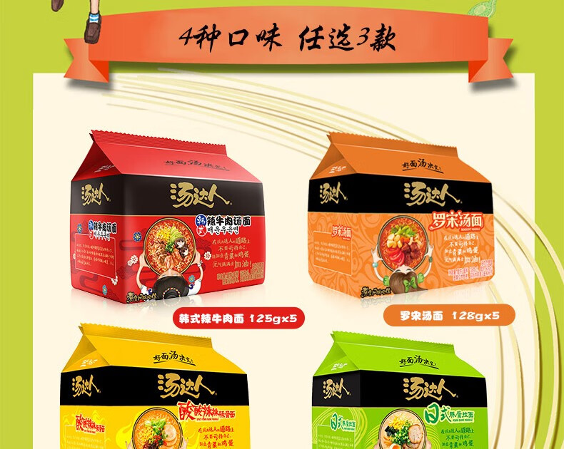 商品名称:统一 方便面 汤达人 日式豚骨味方便面五连包 128g/袋*5