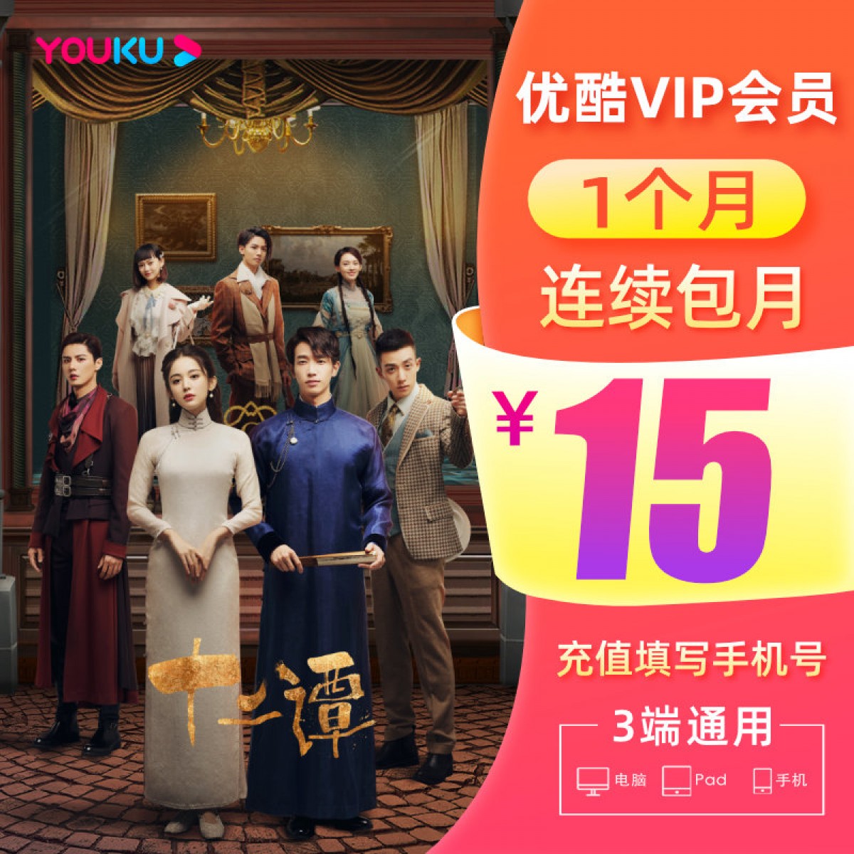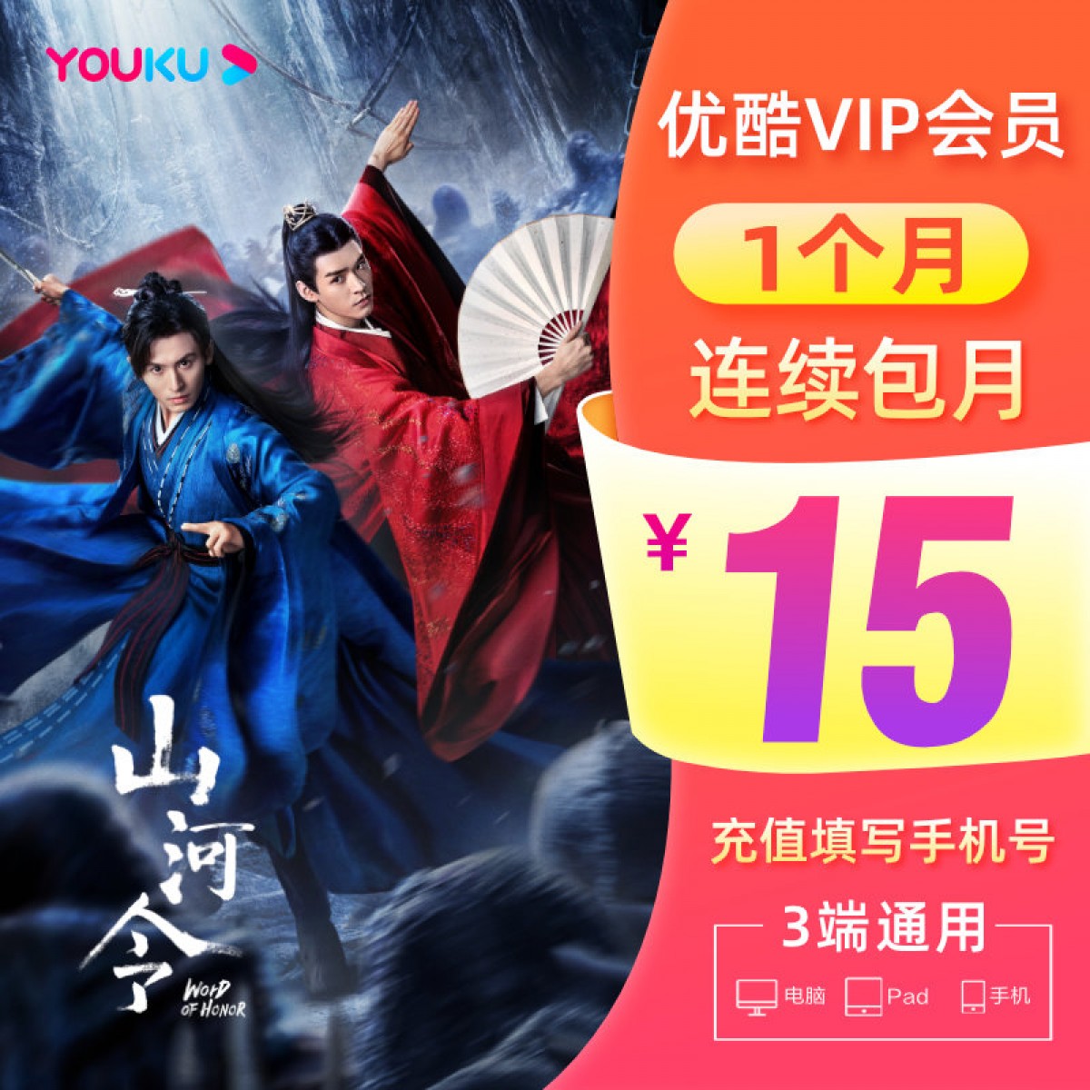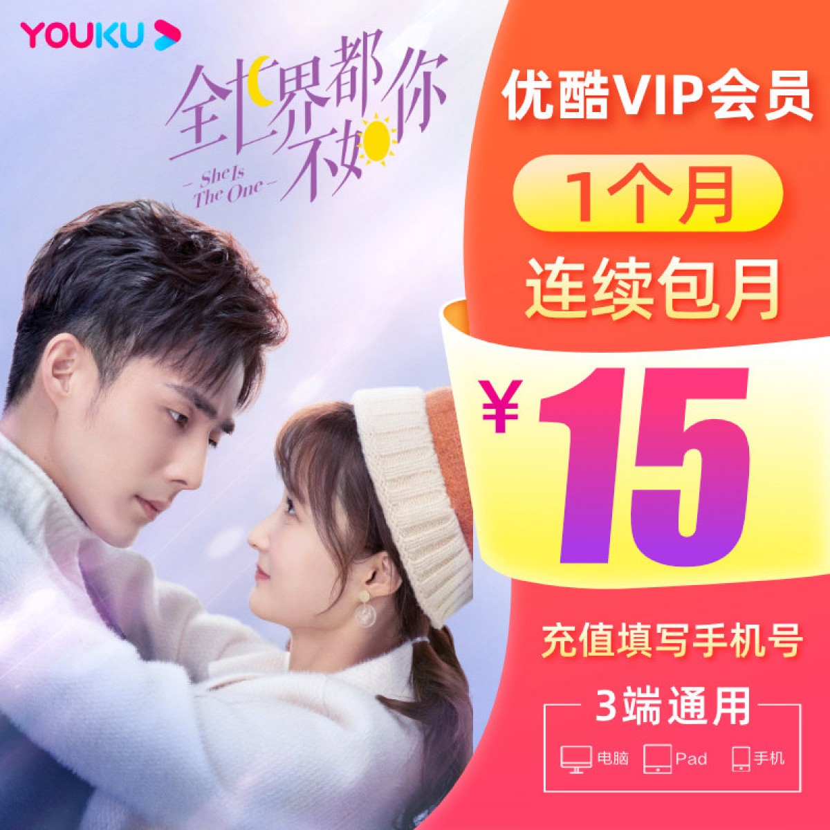 商品名称:优酷会员 1个月优酷vip月卡youku土豆视频vip会员直充