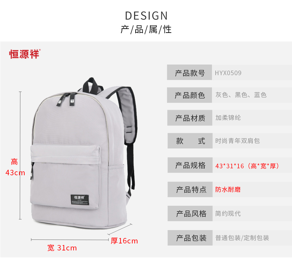 商品名称:恒源祥(HYX) 时尚青年双肩包HYX0509