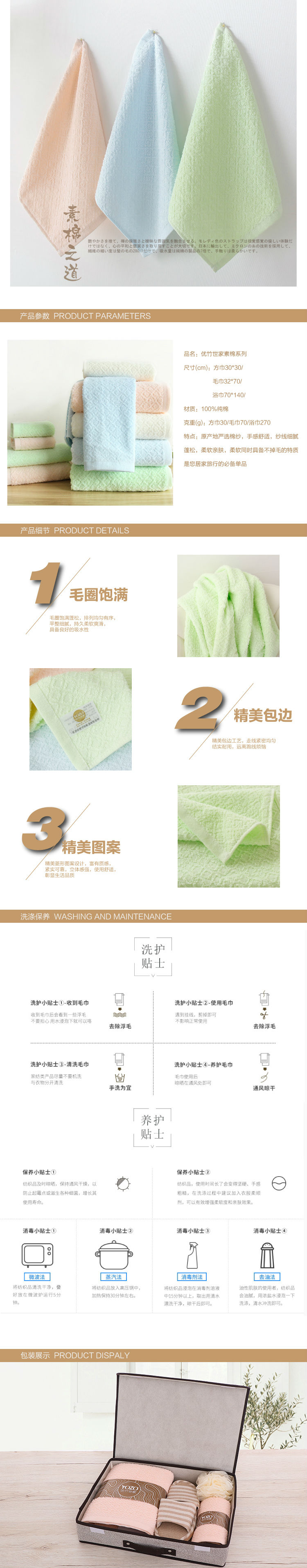 商品名称:优竹世家 素棉家庭五件套-5 毛巾浴巾拖鞋浴球