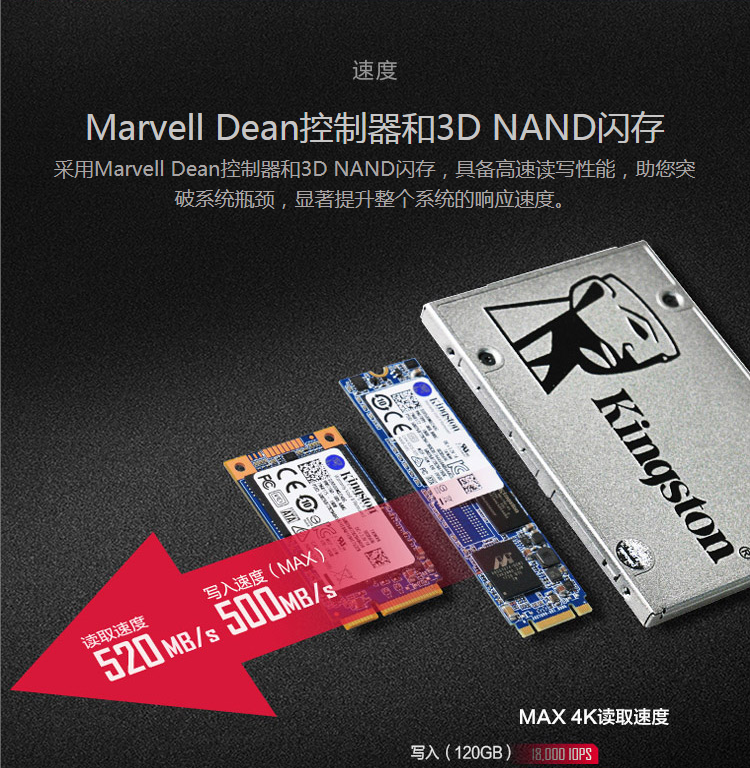 商品名称:金士顿 KINGSTON UV500系列 480G MSATA 固态硬盘
