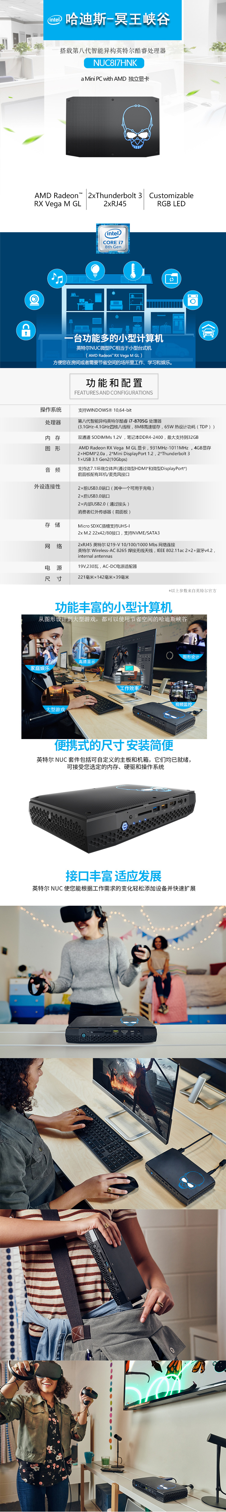 商品名称:英特尔 INTEL 哈迪斯冥王峡谷 酷睿I7-8705G AMD RADEON RX VEGA M GL独立显卡NUC8I7HNK4