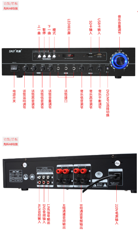 商品名称:先科 SAST SA-808K 音响 音箱 家庭影院 KTV音响套装点歌机卡拉OK音箱会议卡包功放 黑色