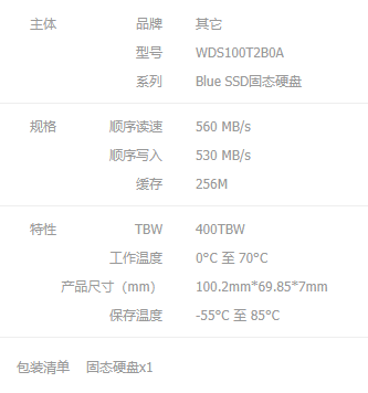 型号: WD BLUE系列-3D版1TBSSD