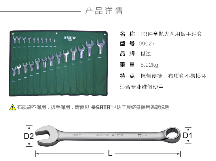 商品名称:世达 11件套全抛光高颈双梅花扳手 组套 08023