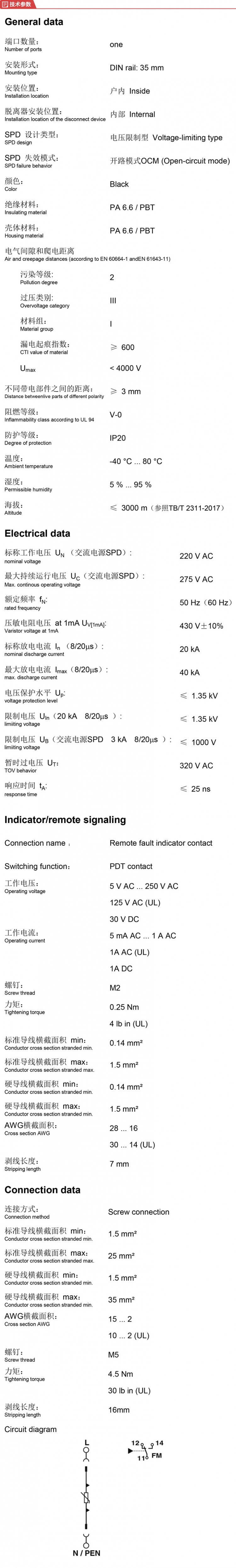商品名称:菲尼克斯 PHOENIX CONTACT 2类Ⅱ级电源电涌保护器 VAL-MS 230 / FM CRW