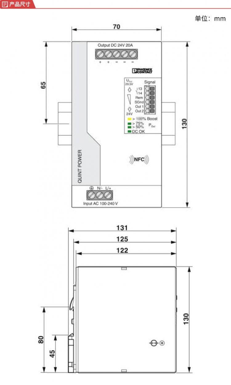 商品名称:菲尼克斯 PHOENIX CONTACT QUINT POWER电源 QUINT4-PS/1AC/24DC/20