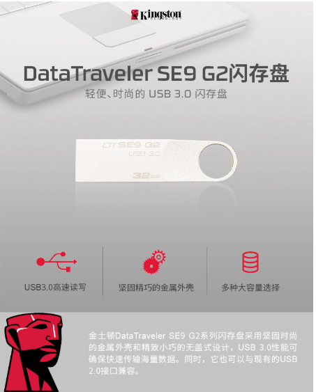 商品名称:金士顿 KINGSTON DT SE9G2 32GB USB3.0 金属U盘 银色超薄 读速高达100M S