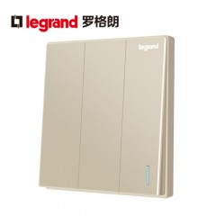 罗格朗 大面板家用三联双控3开三位双控三开双控开关86型香槟金